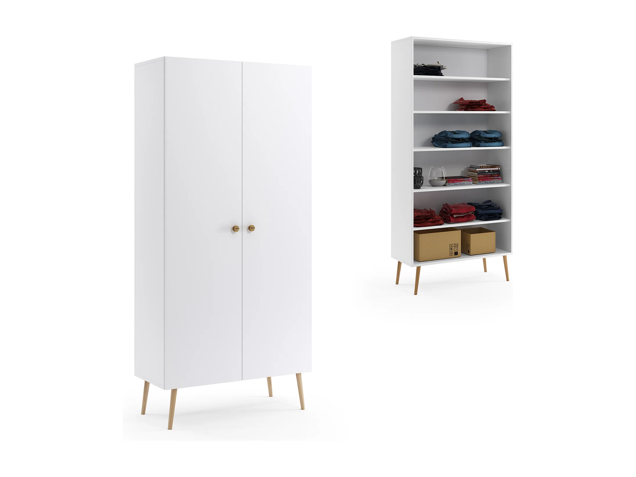 Armario Alto con 5 Estantes – Color Blanco 212x87x41 cm – Diseño Escandinavo para Dormitorio o Salón