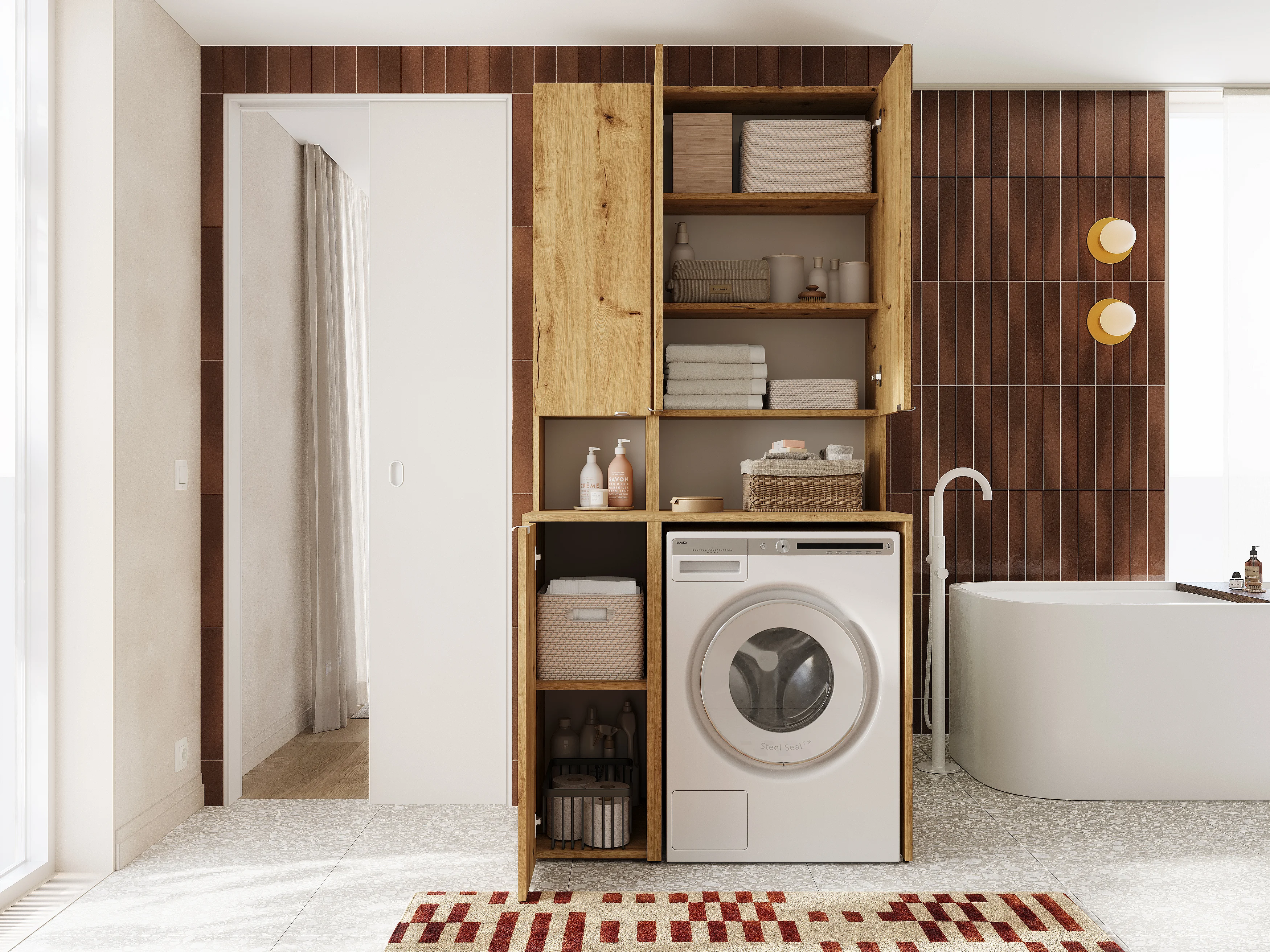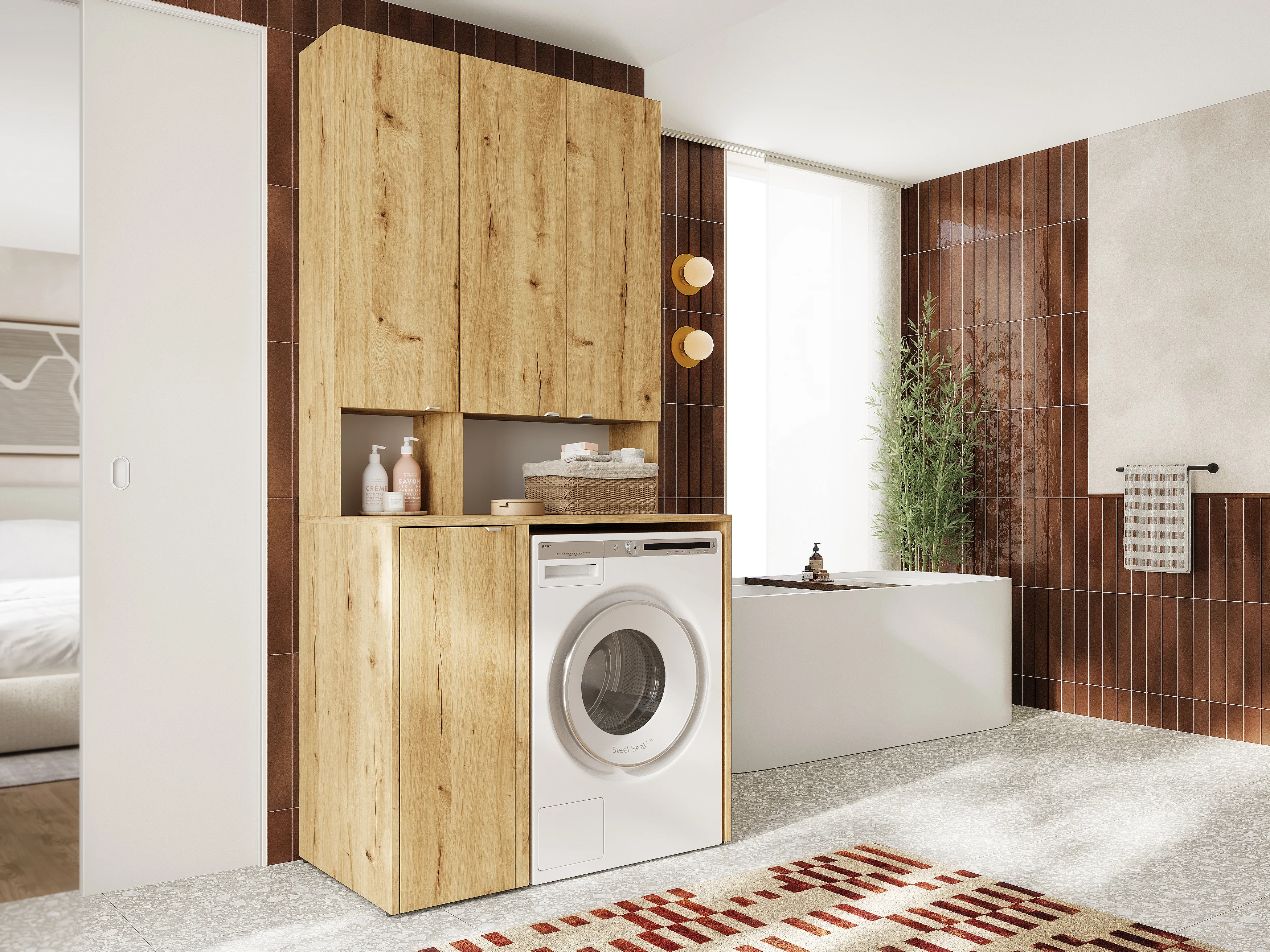 Armario alto de baño - 210 x 33 x 56 cm Armario estrecho de almacenamiento para baño