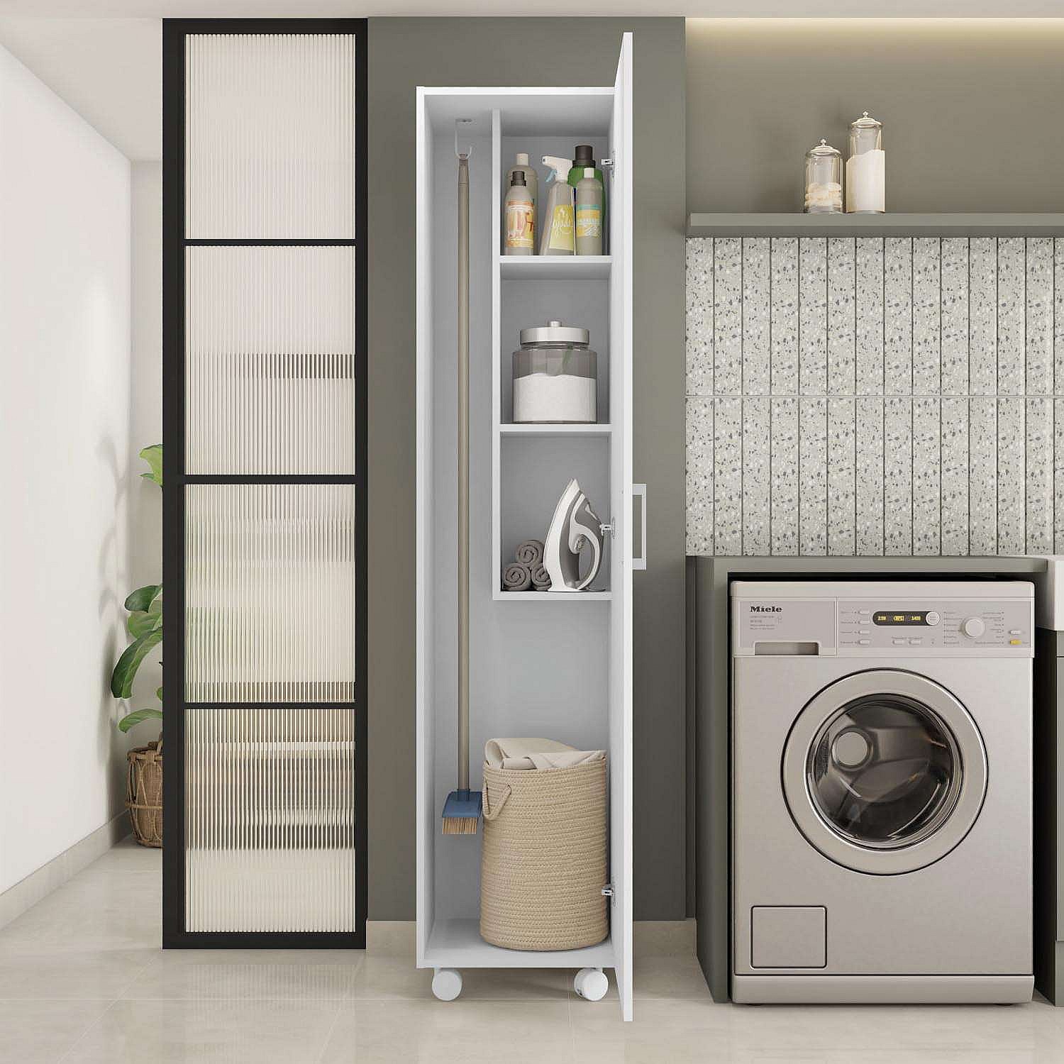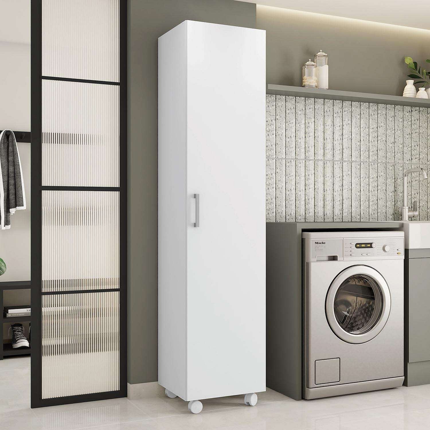 Armario Alto Multiusos con Ruedas 1p Blanco 42x183 cm