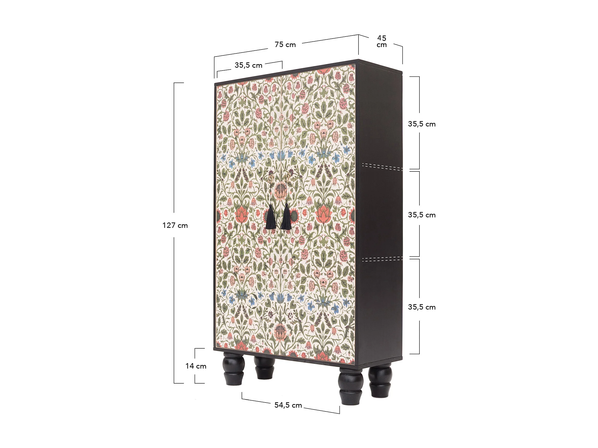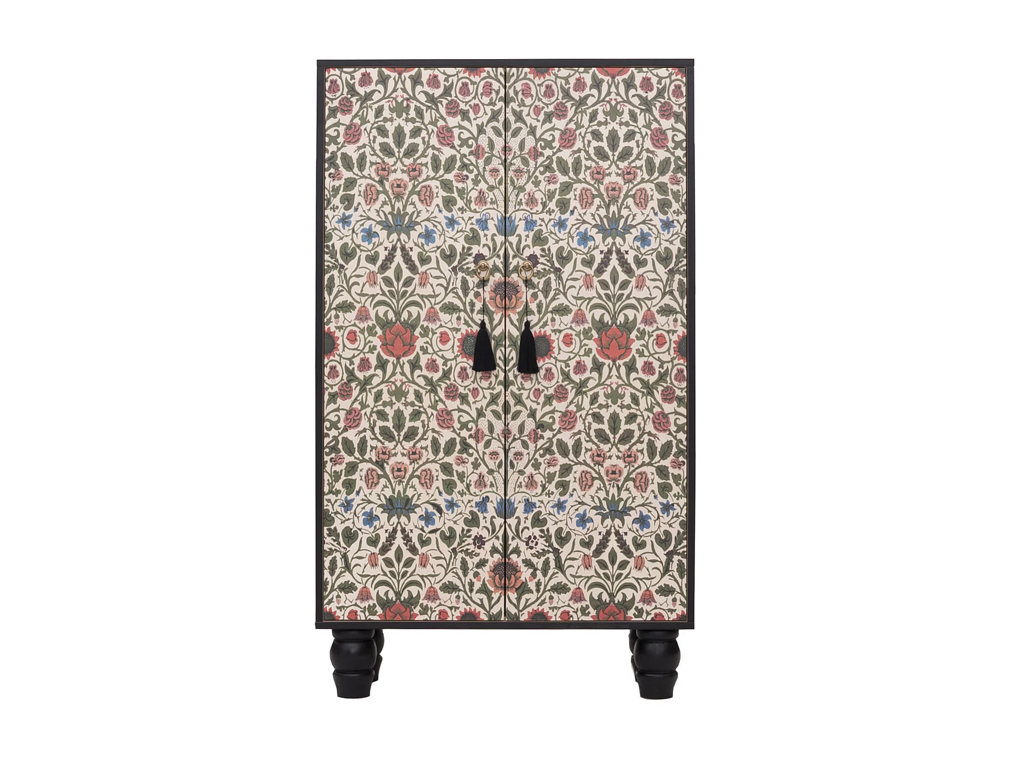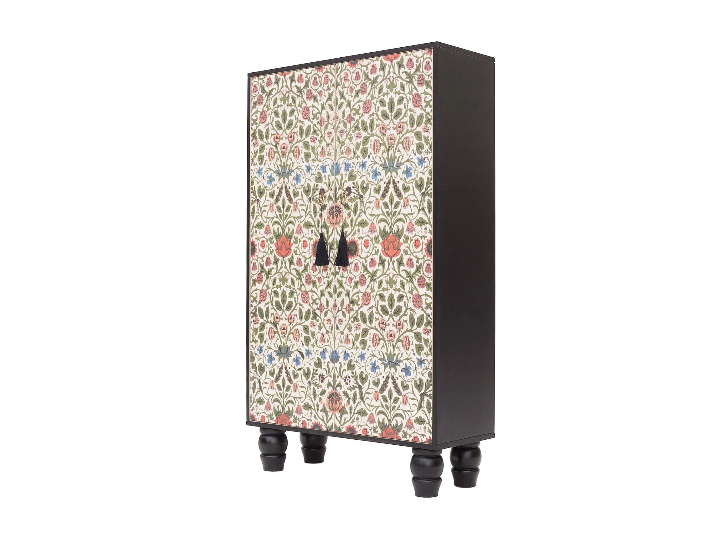 Armario aparador de MDF estampado floral sobre fondo negro
