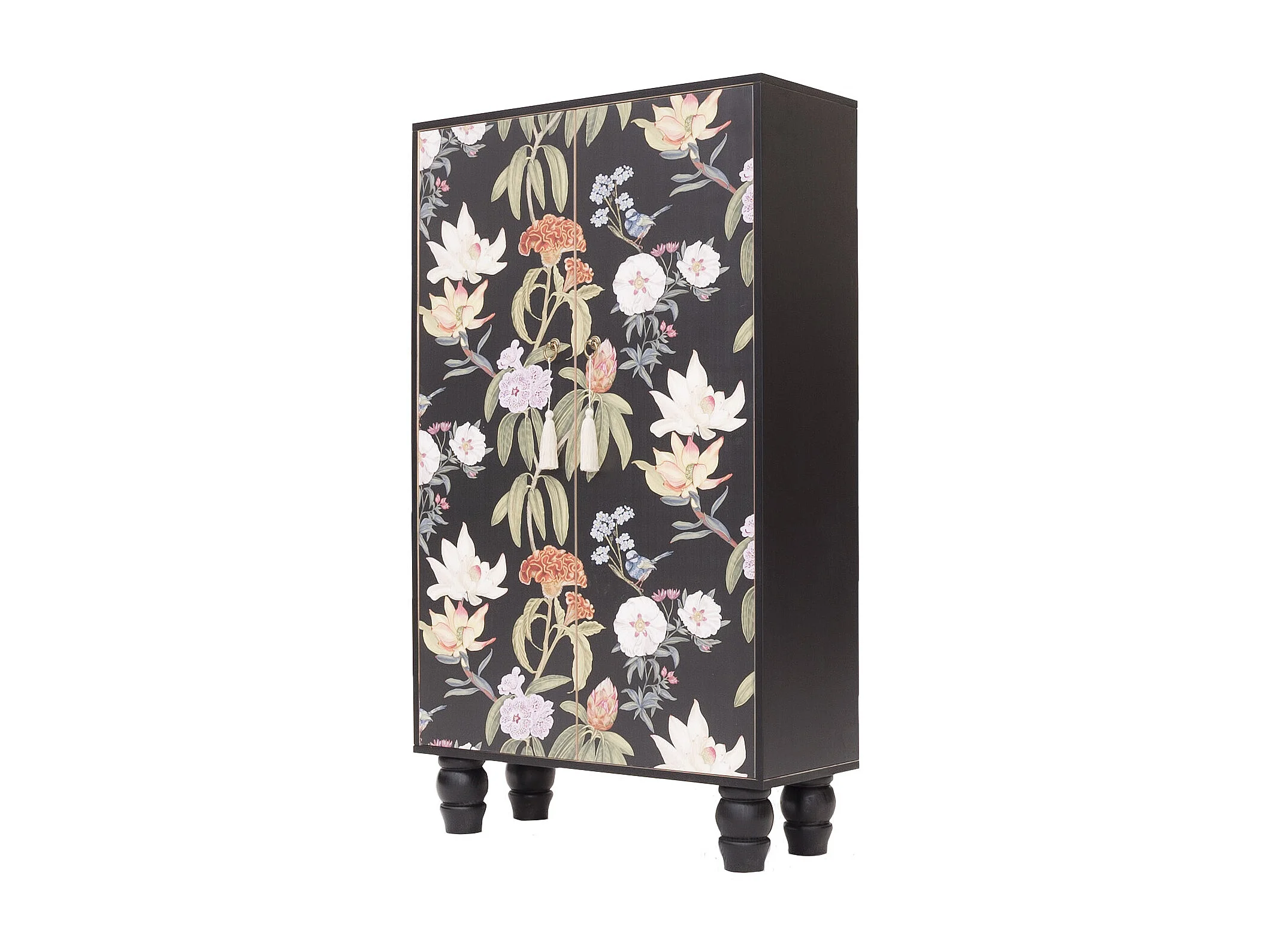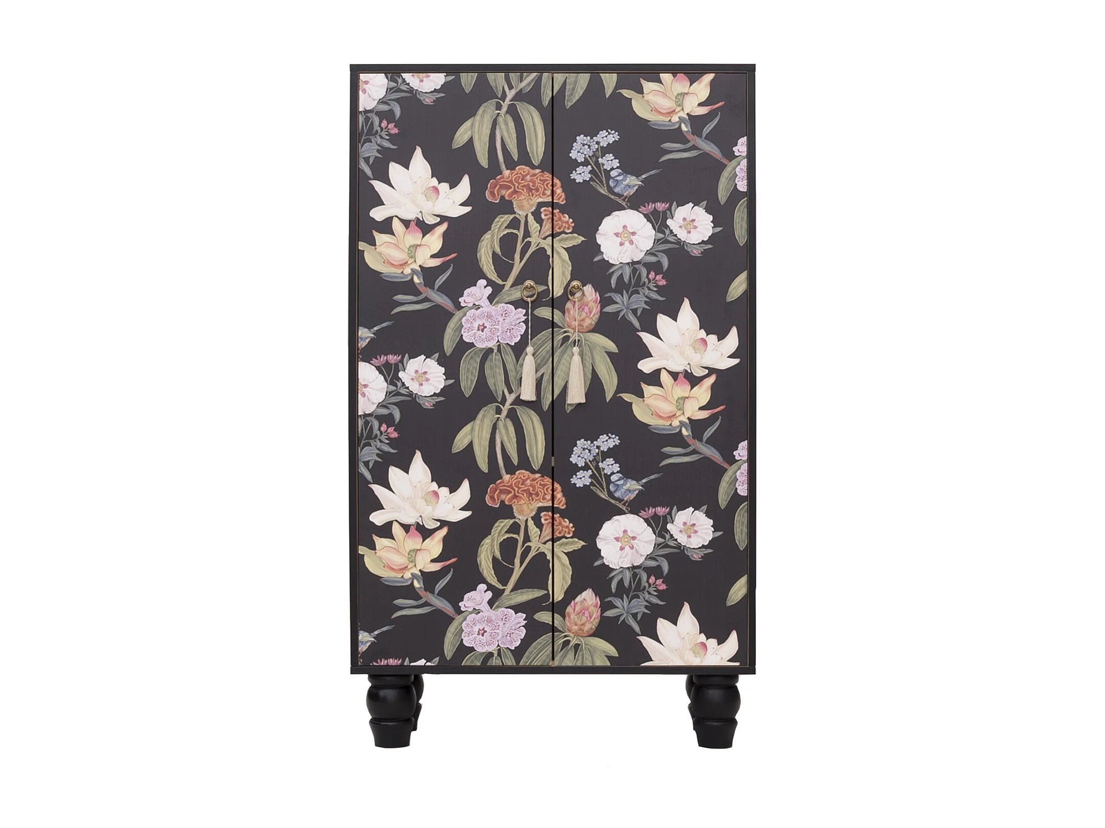 Armario aparador de MDF estampado floral sobre fondo negro