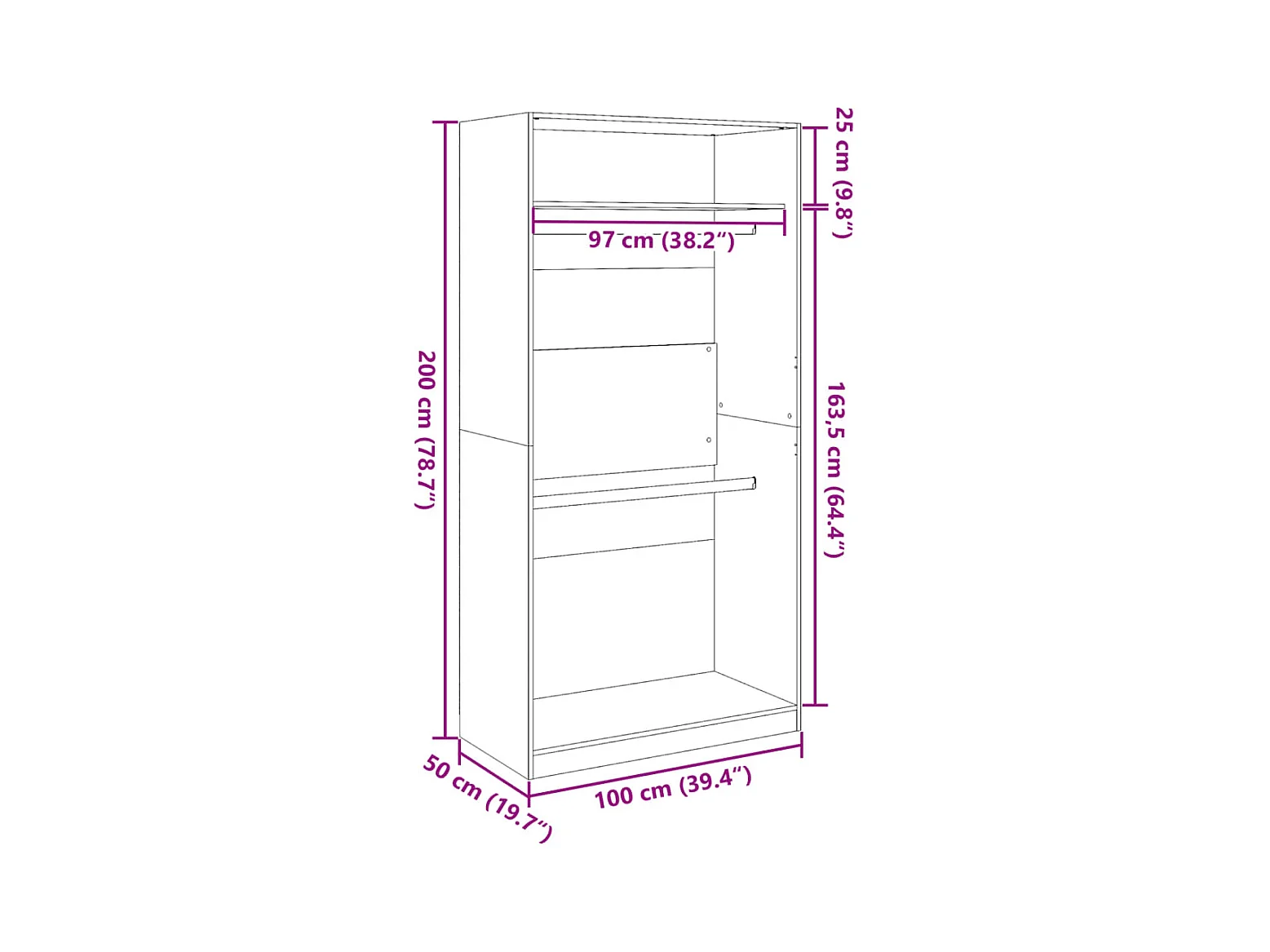 Armario artesanal de roble 100x50x200 cm de madera contrachapada