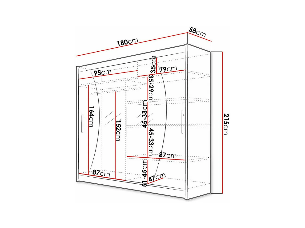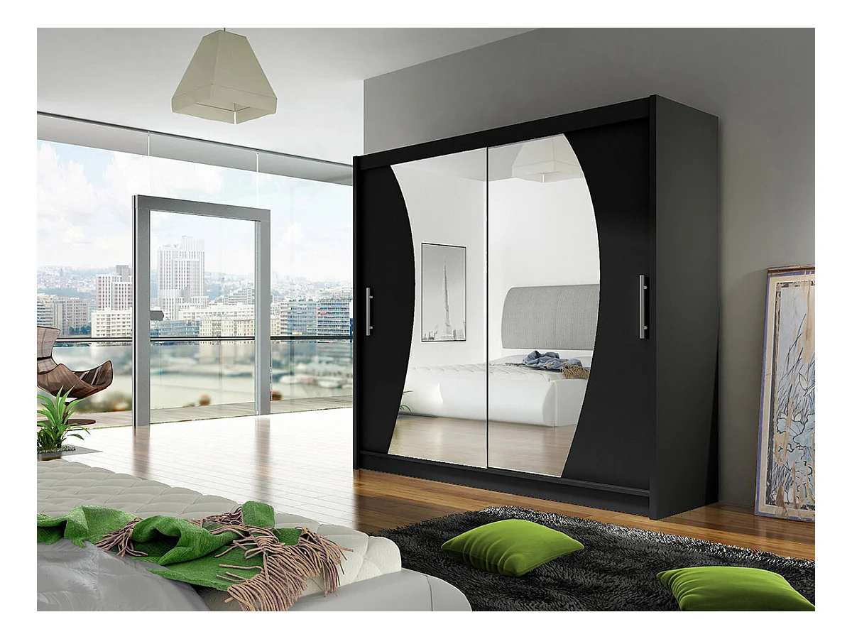 Armario Closico 115, Negro, 215x180x58cm, Puertas de armario: Correderas