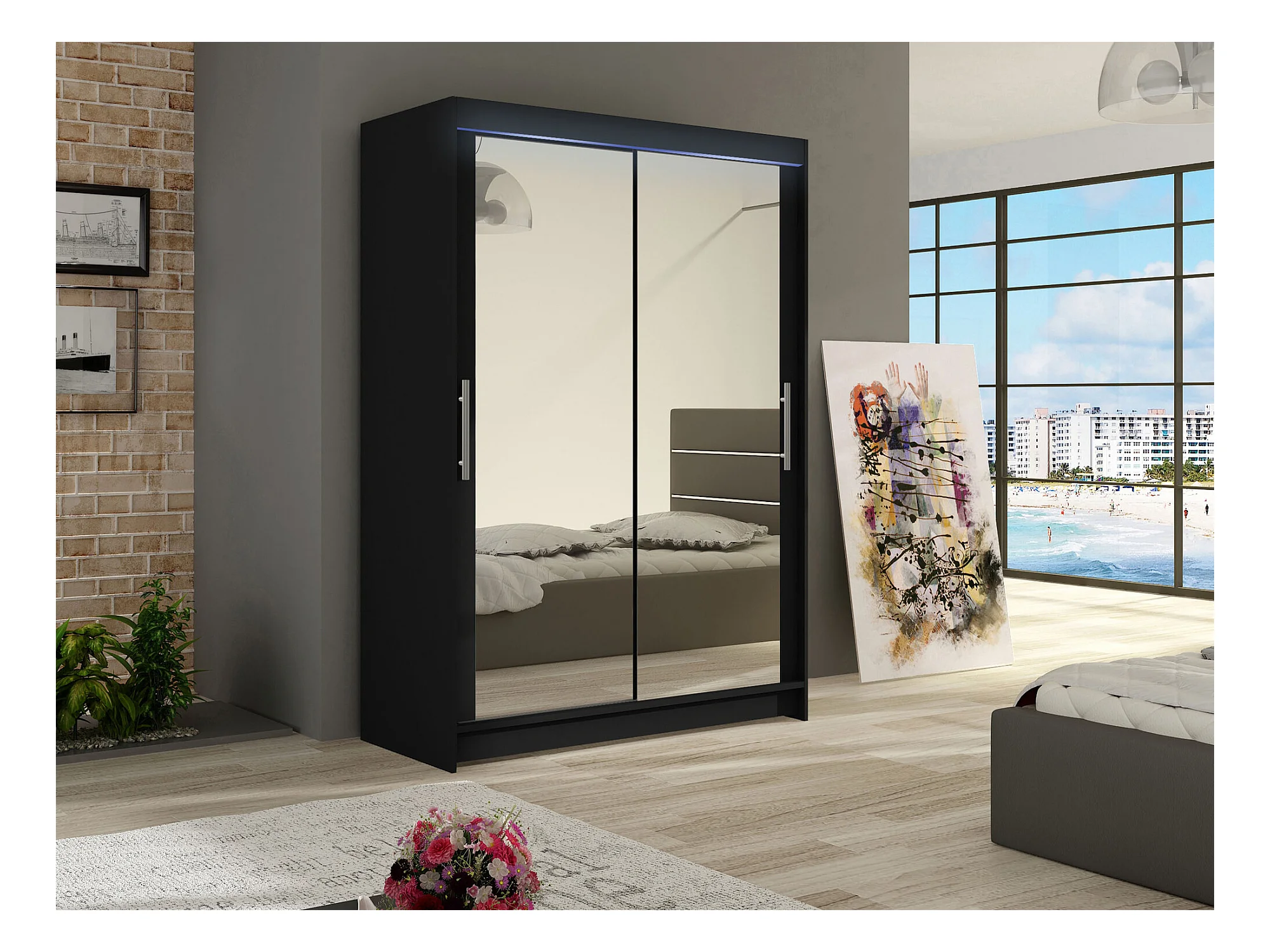 Armario Closico 129, Negro, 200x120x58cm, Puertas de armario: Correderas