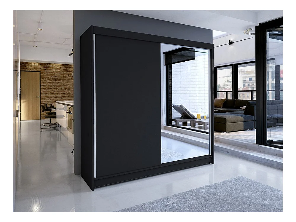Armario Closico 137, Negro, 215x180x58cm, Puertas de armario: Correderas