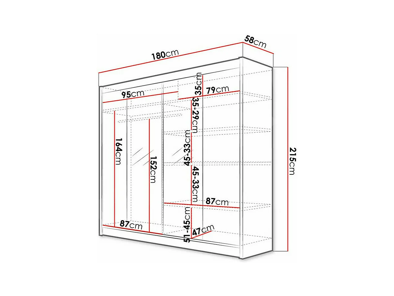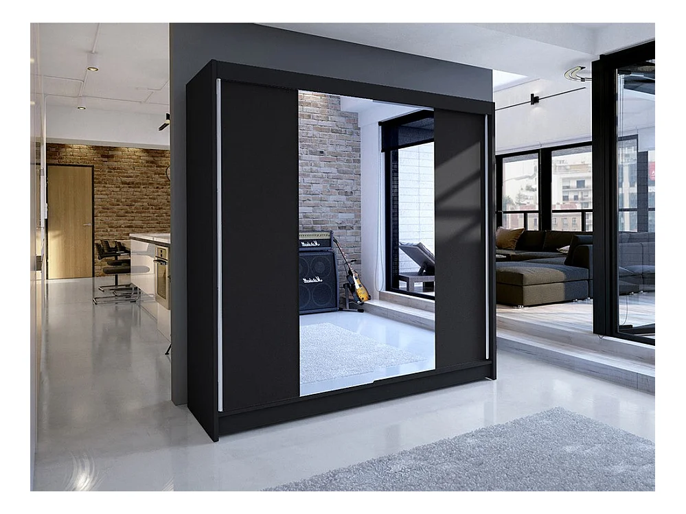 Armario Closico 138, Negro, 215x180x58cm, Puertas de armario: Correderas