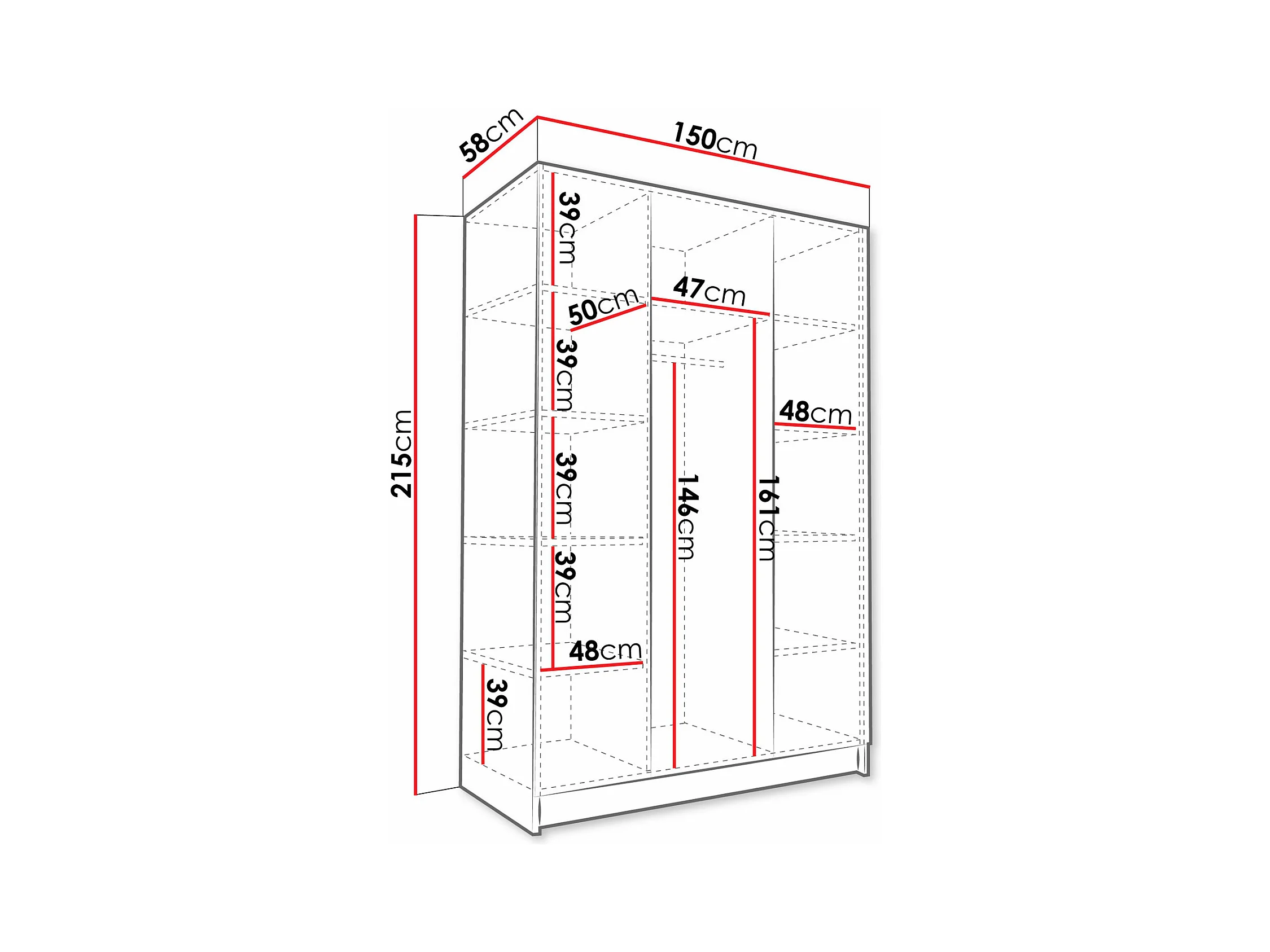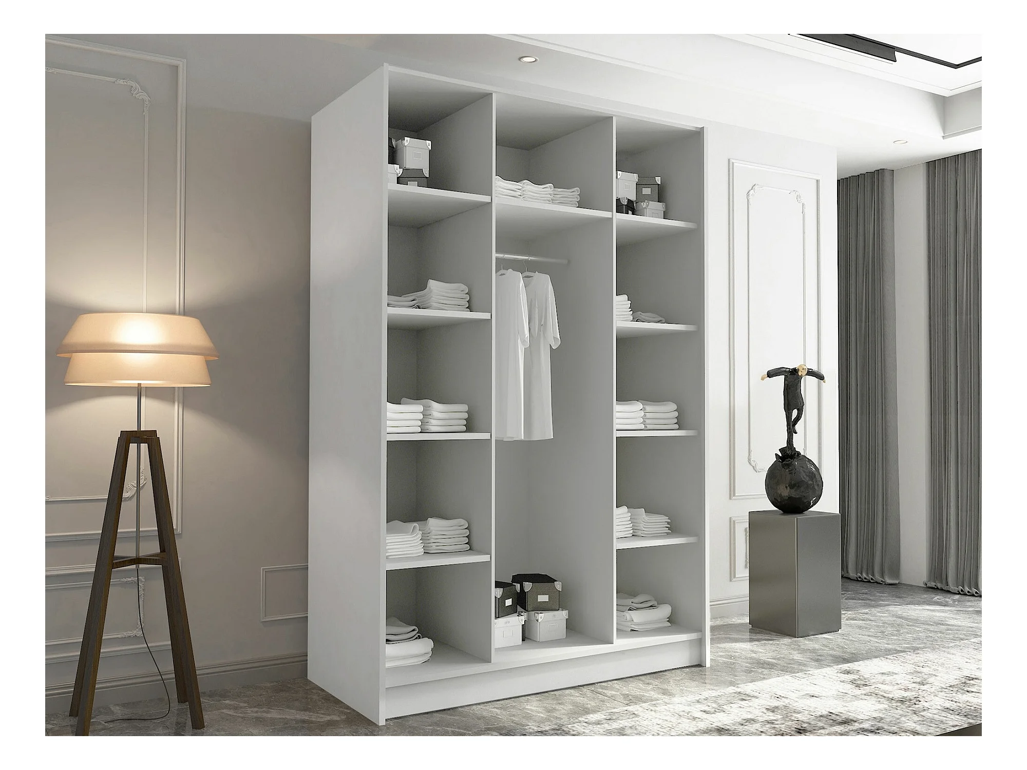 Armario Closico 196, Blanco|Negro, 215x150x58cm, Puertas de armario: Con bisagras