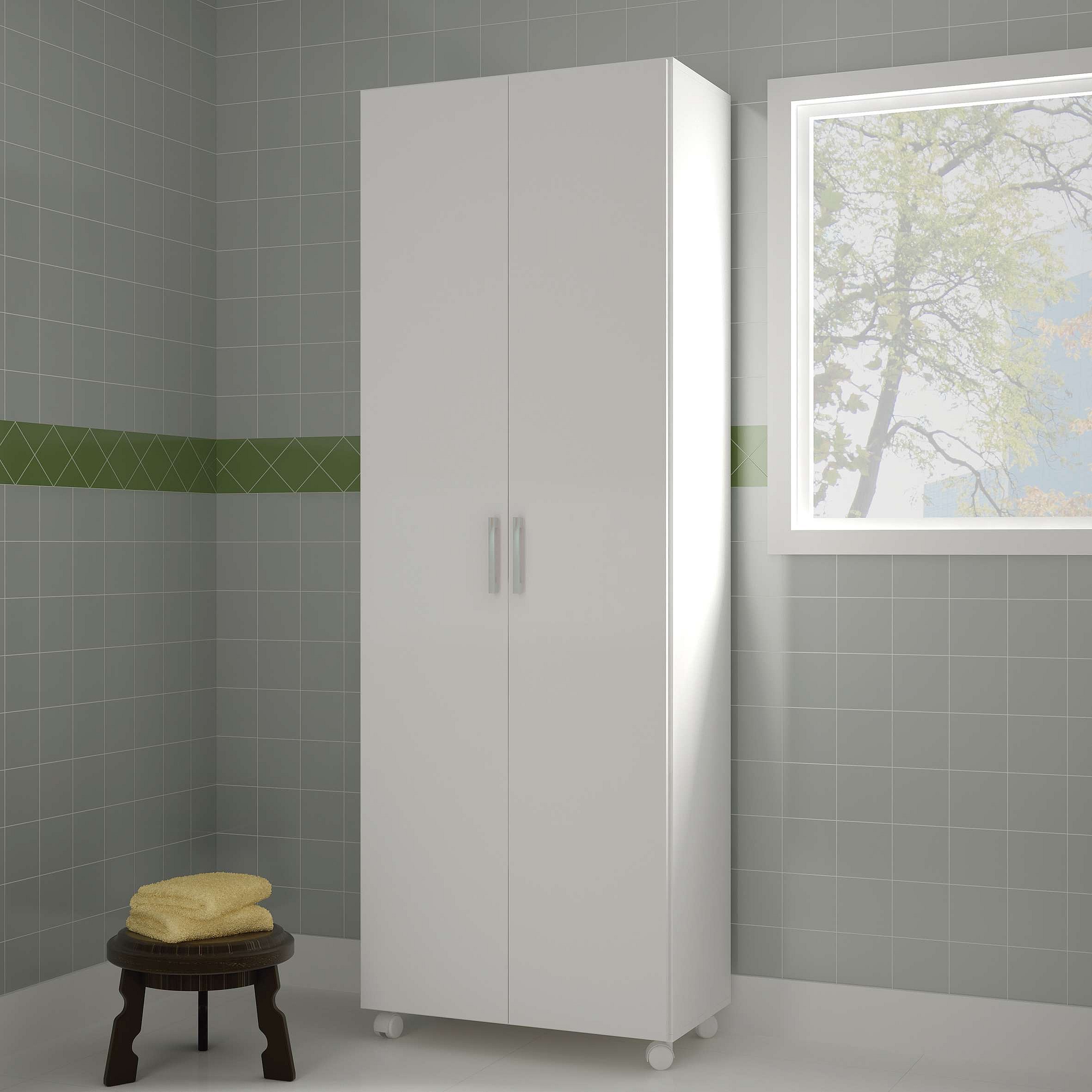 Armario Aux. Alto Multiusos c/Ruedas 2p Blanco 72x183 cm