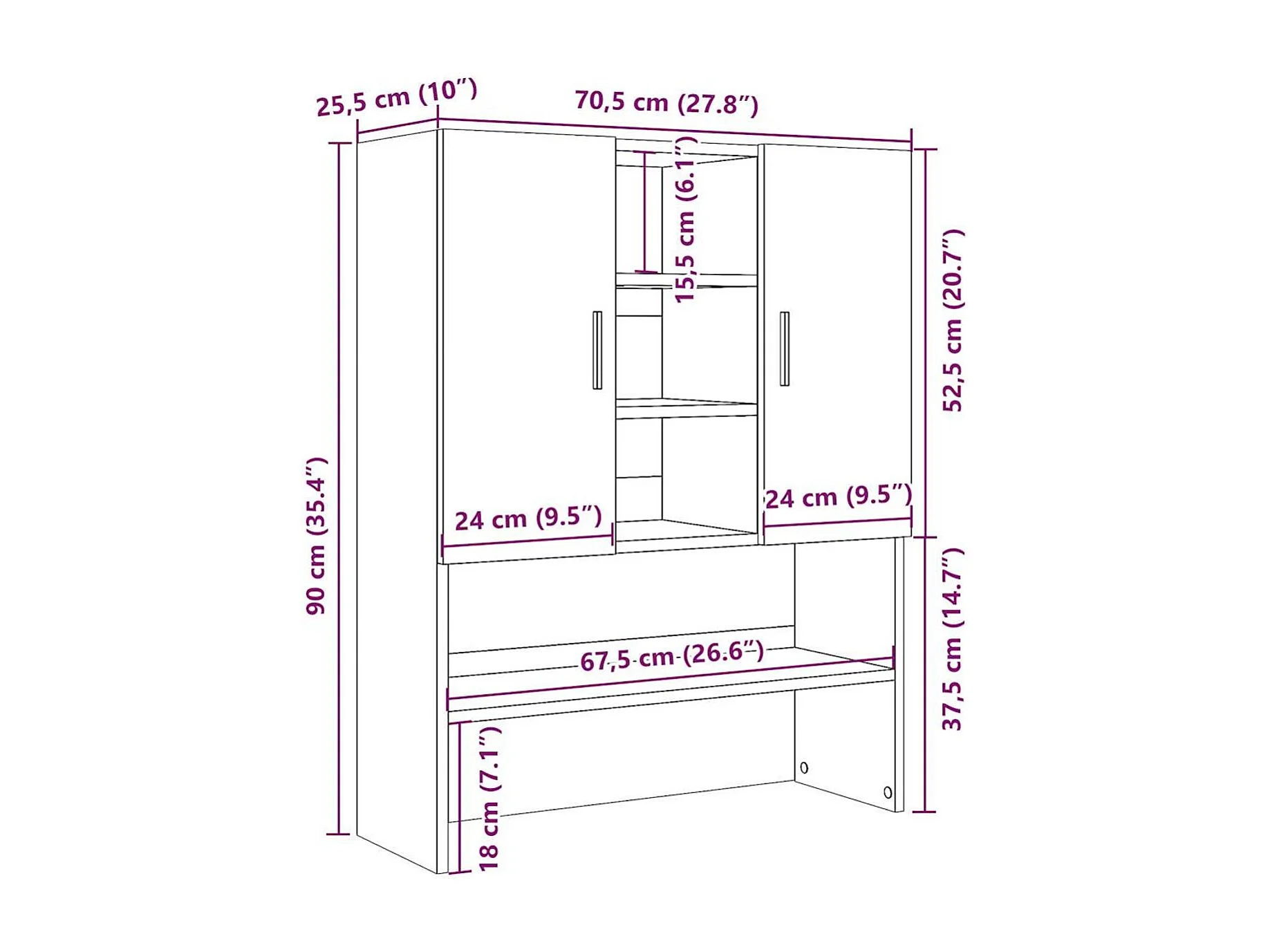 Armario para lavadora Dila 2 puertas madera 91,5x70,5x71,5 cm