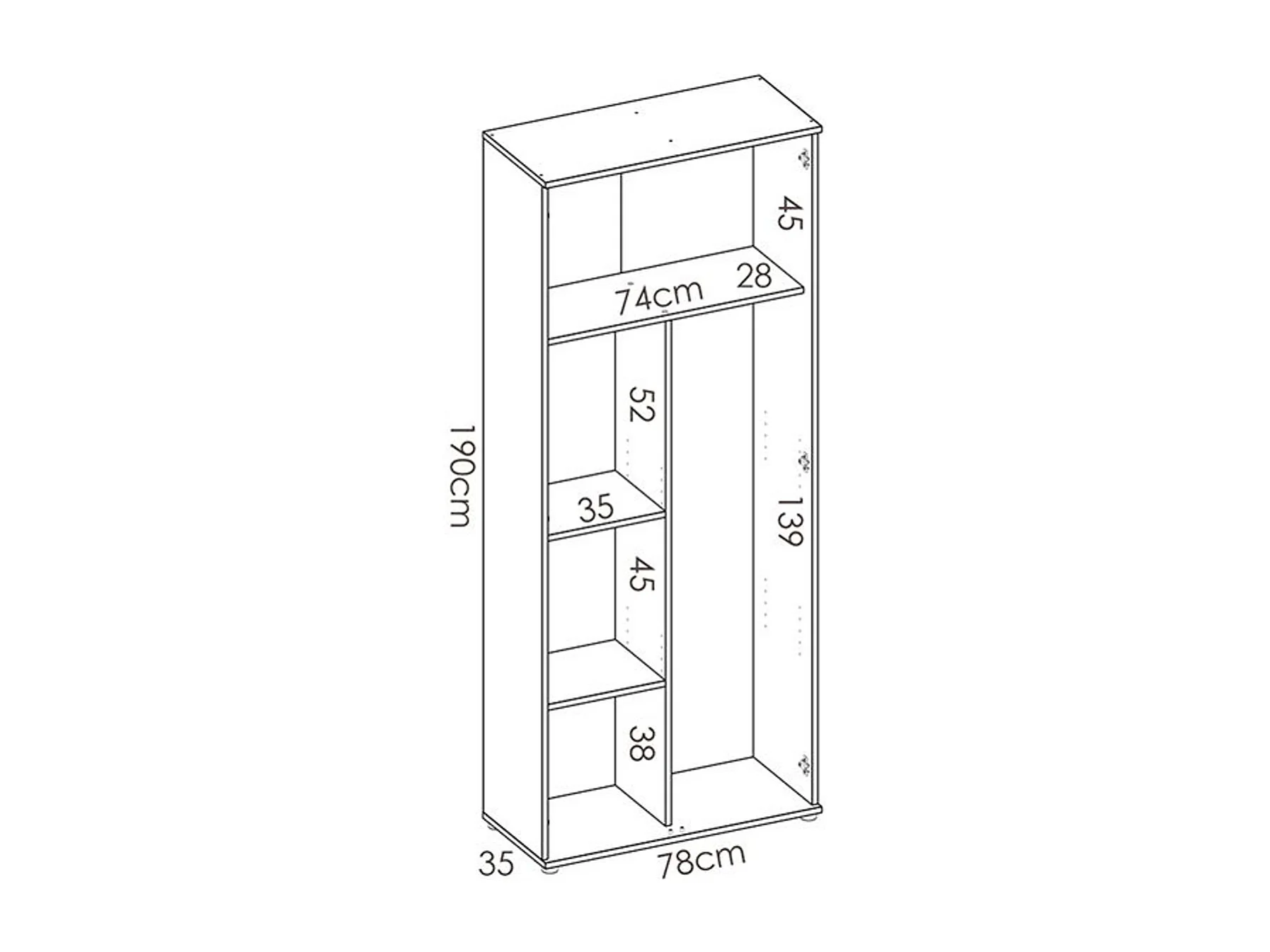 Armario auxiliar Fit 4 compartimentos con escobero abatibles blanco 190x78x35 cm