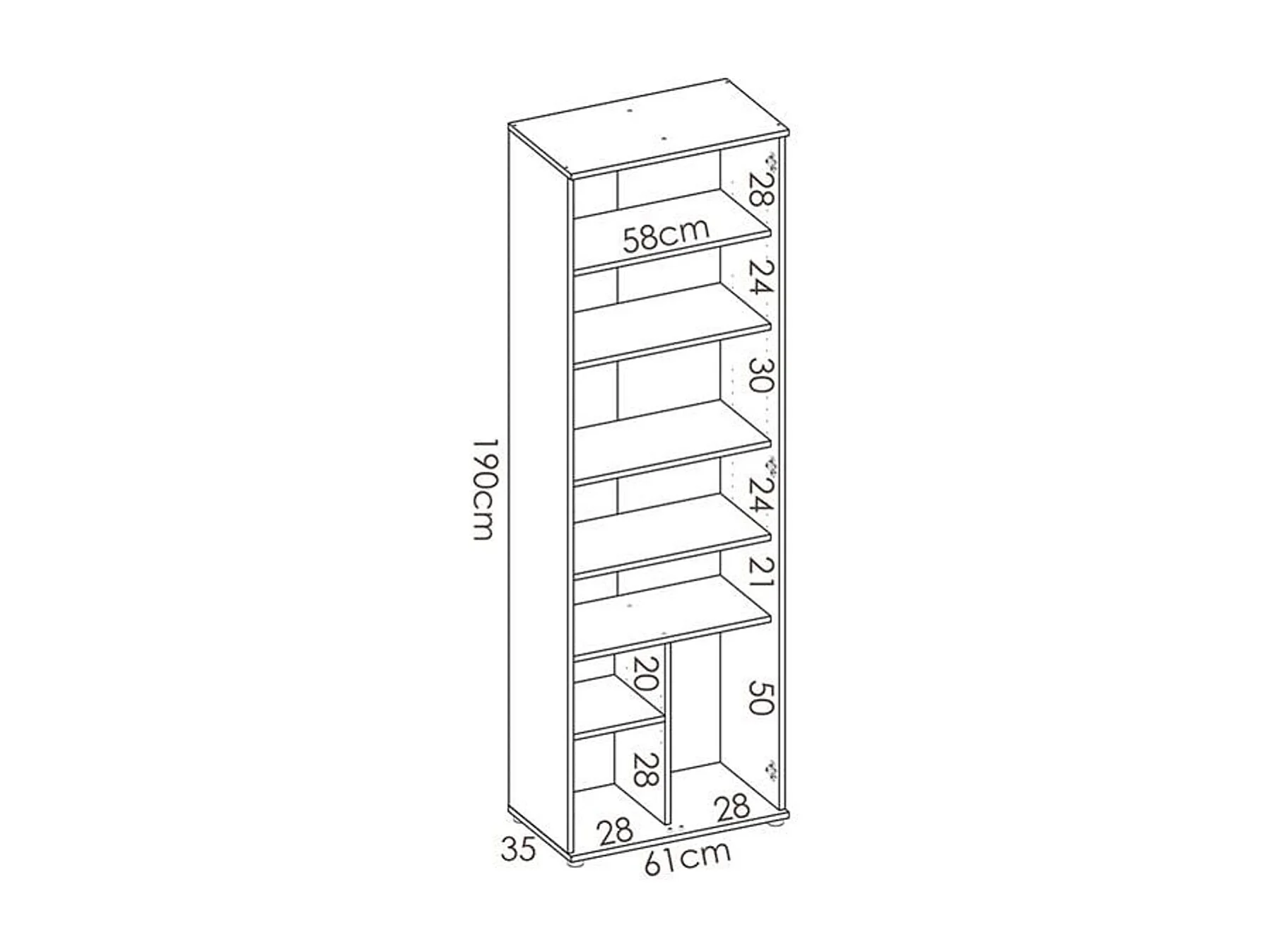 Armario auxiliar Fit 8 compartimentos blanco 190x61x35 cm