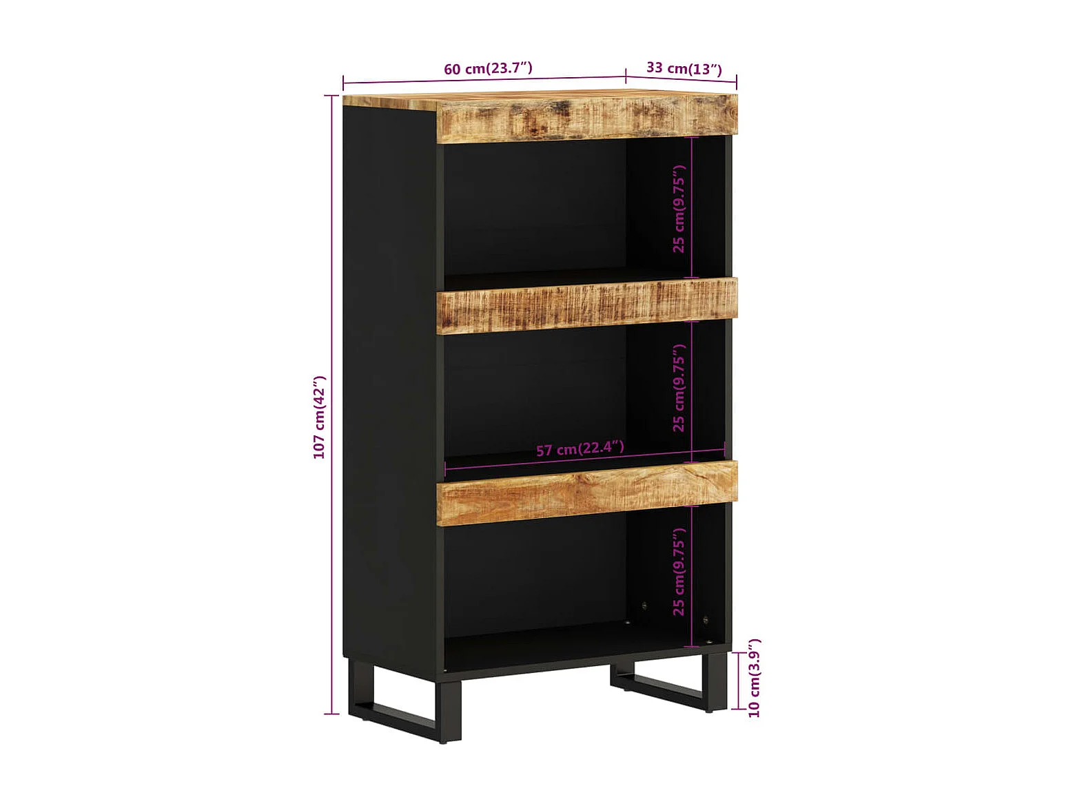 Armario auxiliar madera maciza de mango 60x33x107 cm