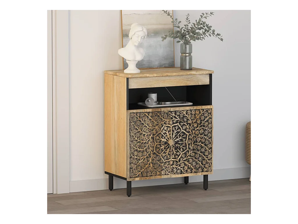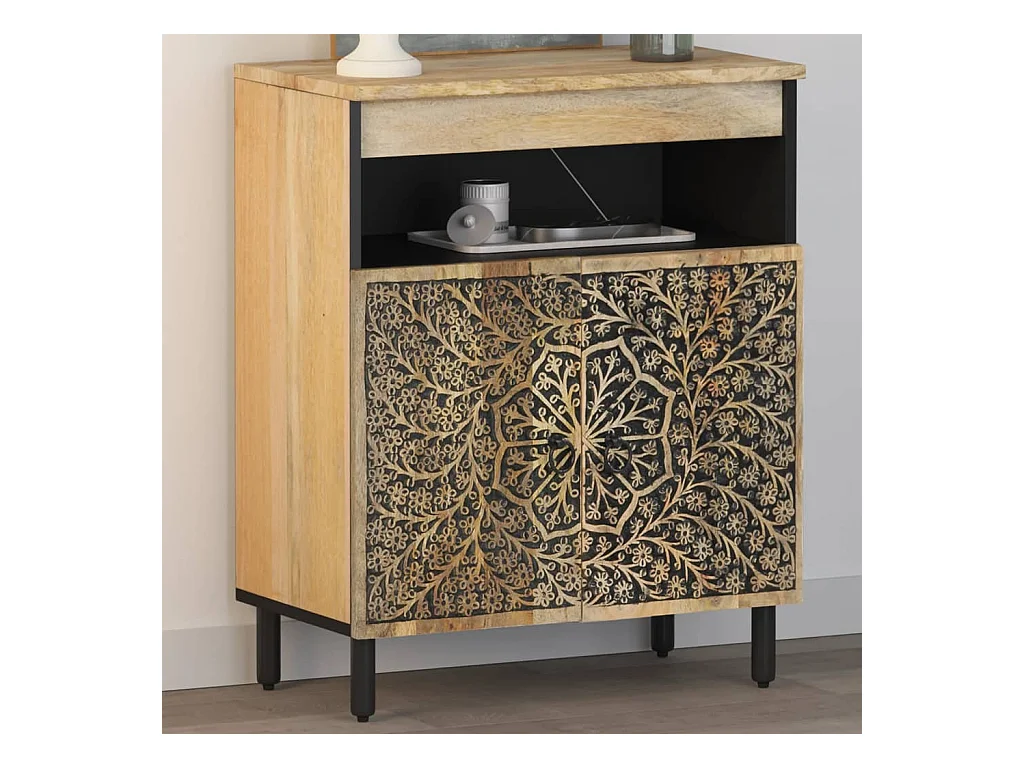 Armario auxiliar madera maciza de mango 60x33x75 cm