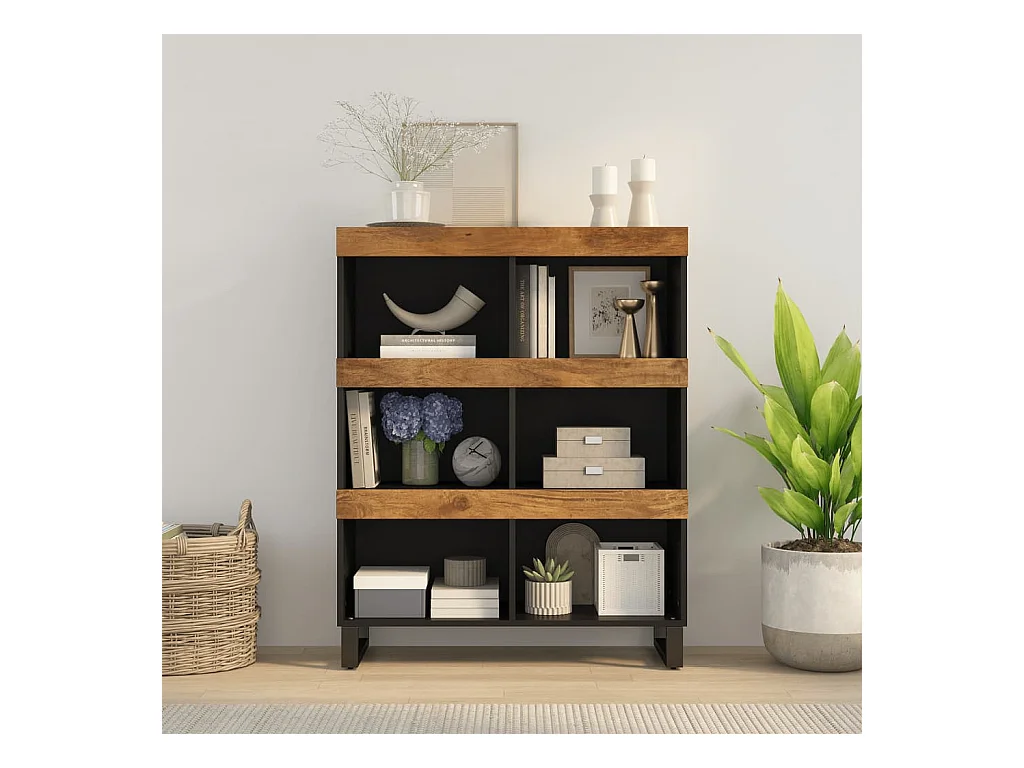 Mueble auxiliar madera maciza mango marrón/negro 60x33,5x75 cm ES968959