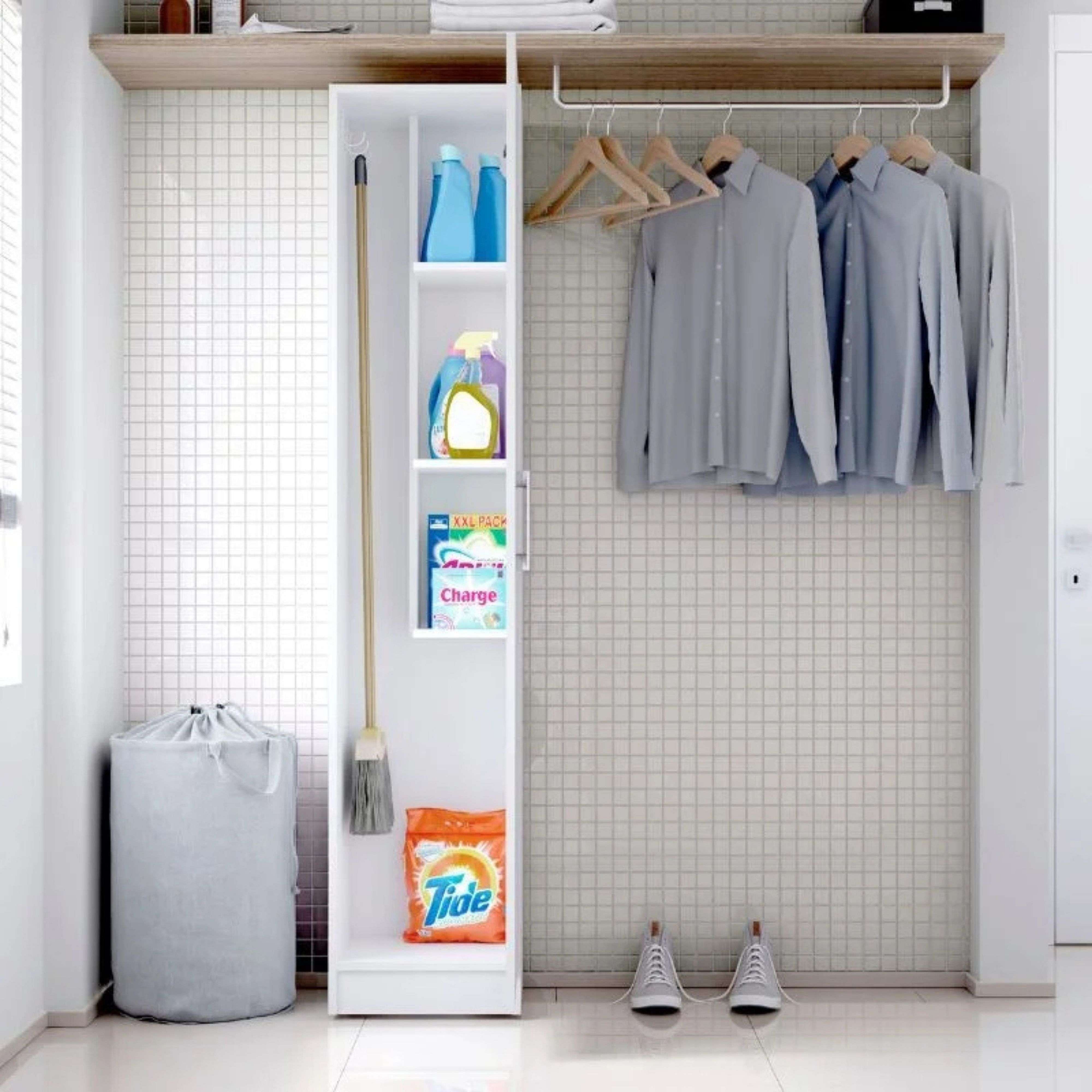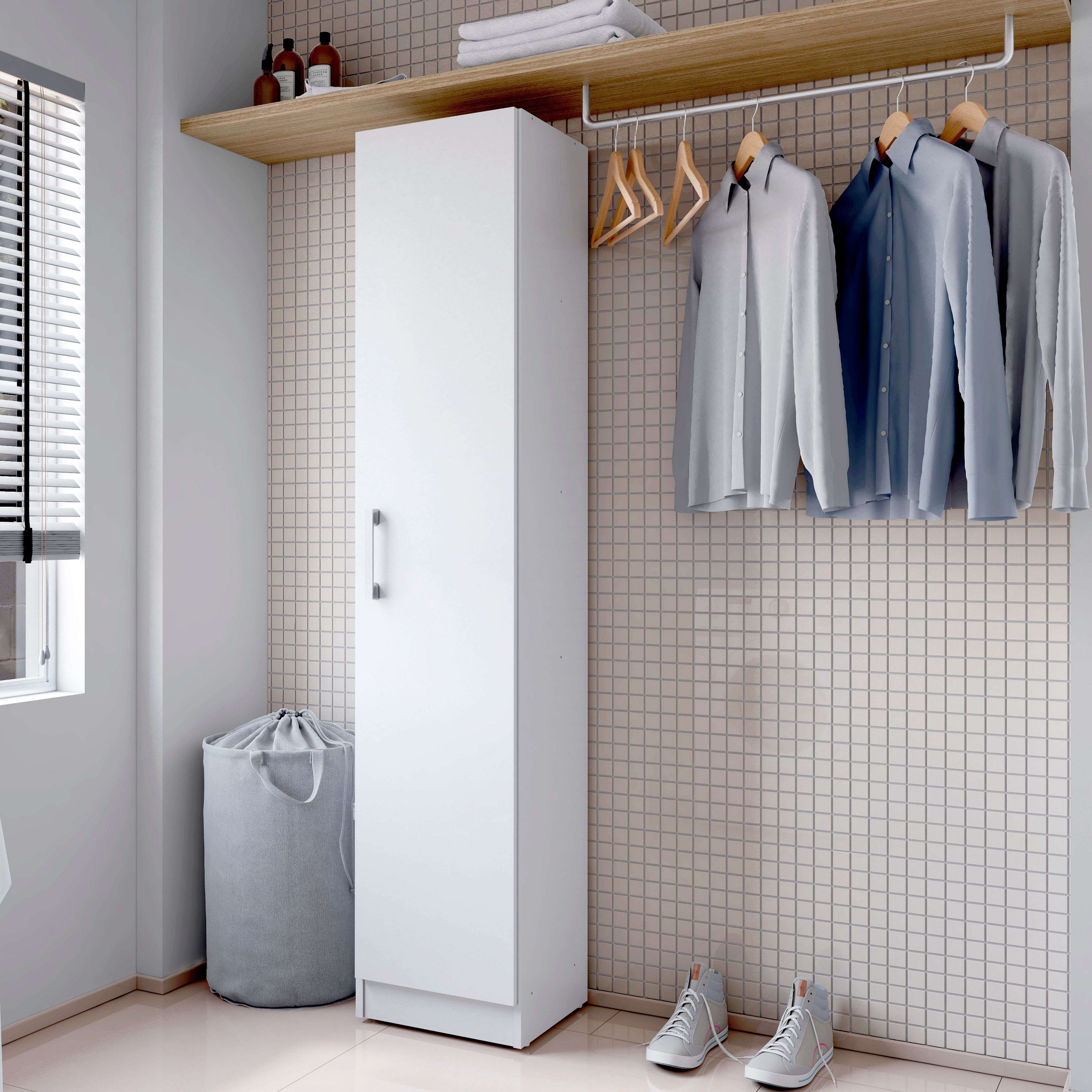 Armario Auxiliar Multiusos Alto Puerta Abatible Blanco 35x170 cm