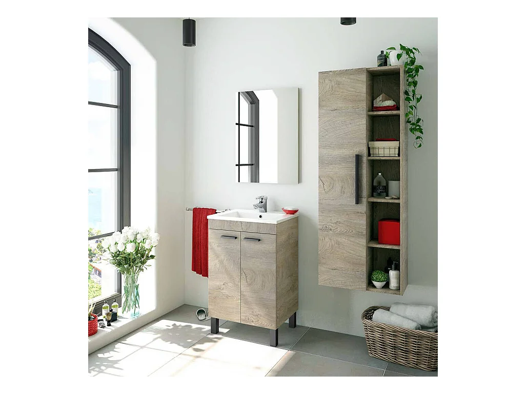 Armario bajo encimera Dkolaro, Mueble de baño, Armario de 2 puertas con espejo, lavabo no incluido, 50x40h80 cm, Roble