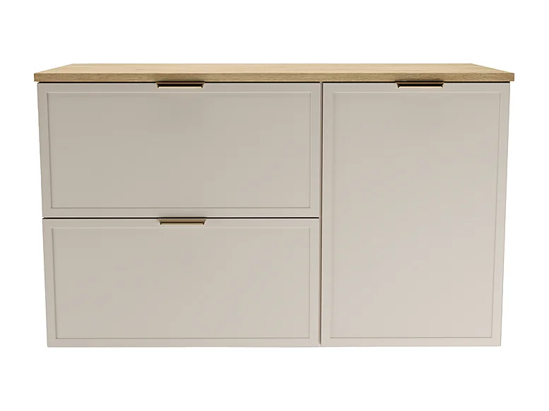 Armario bajo lavabo con cesto para la ropa sucia 100 cm. Frentes con marco en roble Cremona / Cachemira Roma.