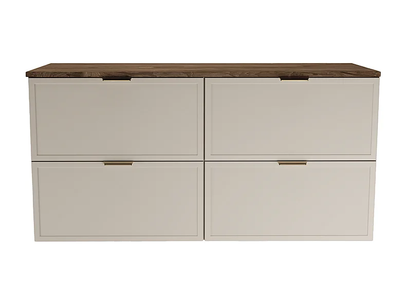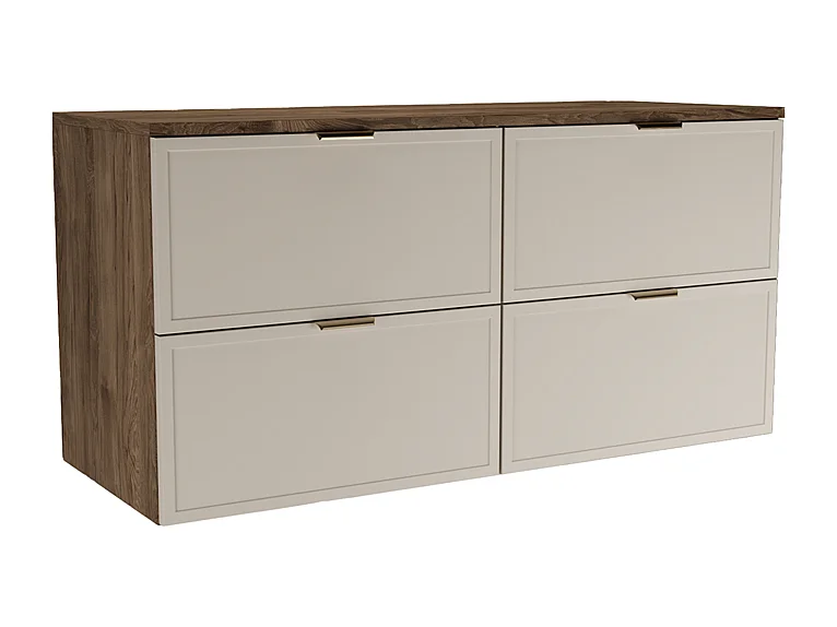 Armario bajo lavabo con encimera de 120 cm. Frentes con marco en roble nogal / cachemira Roma.