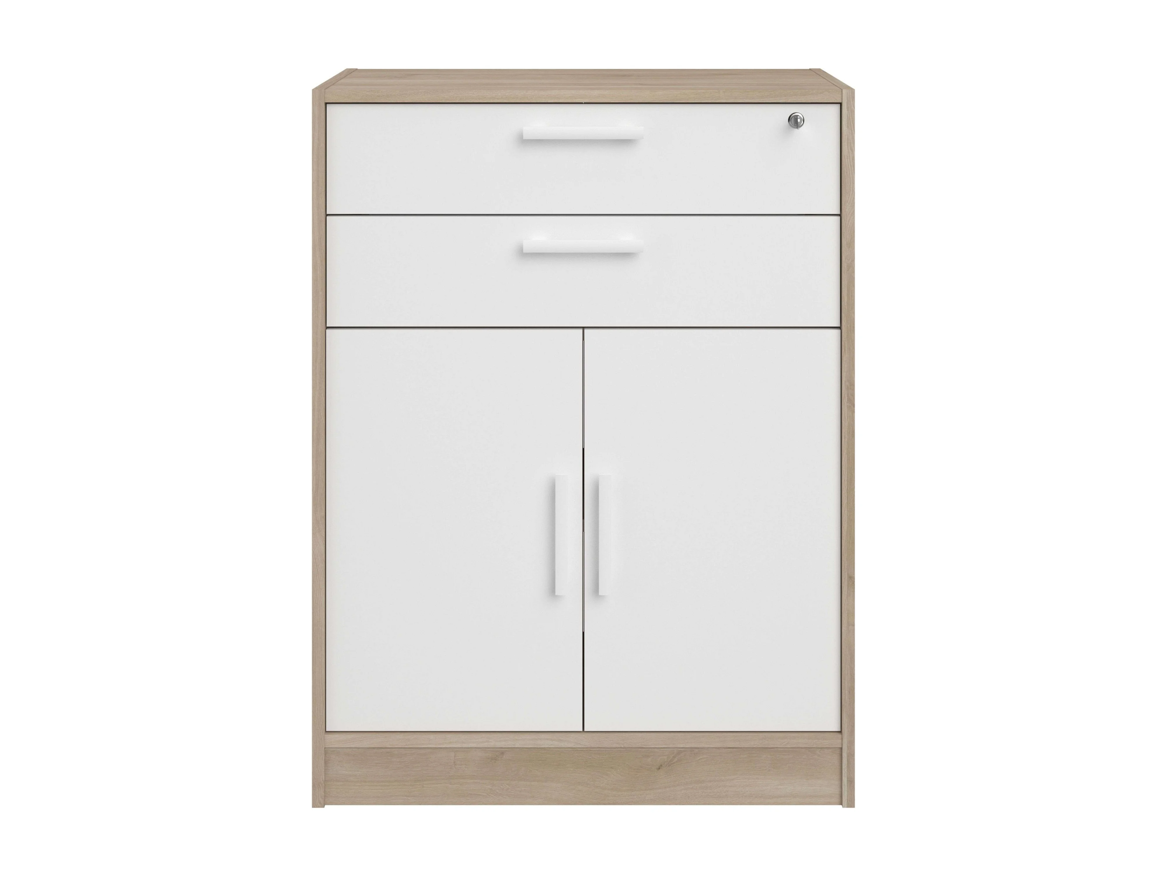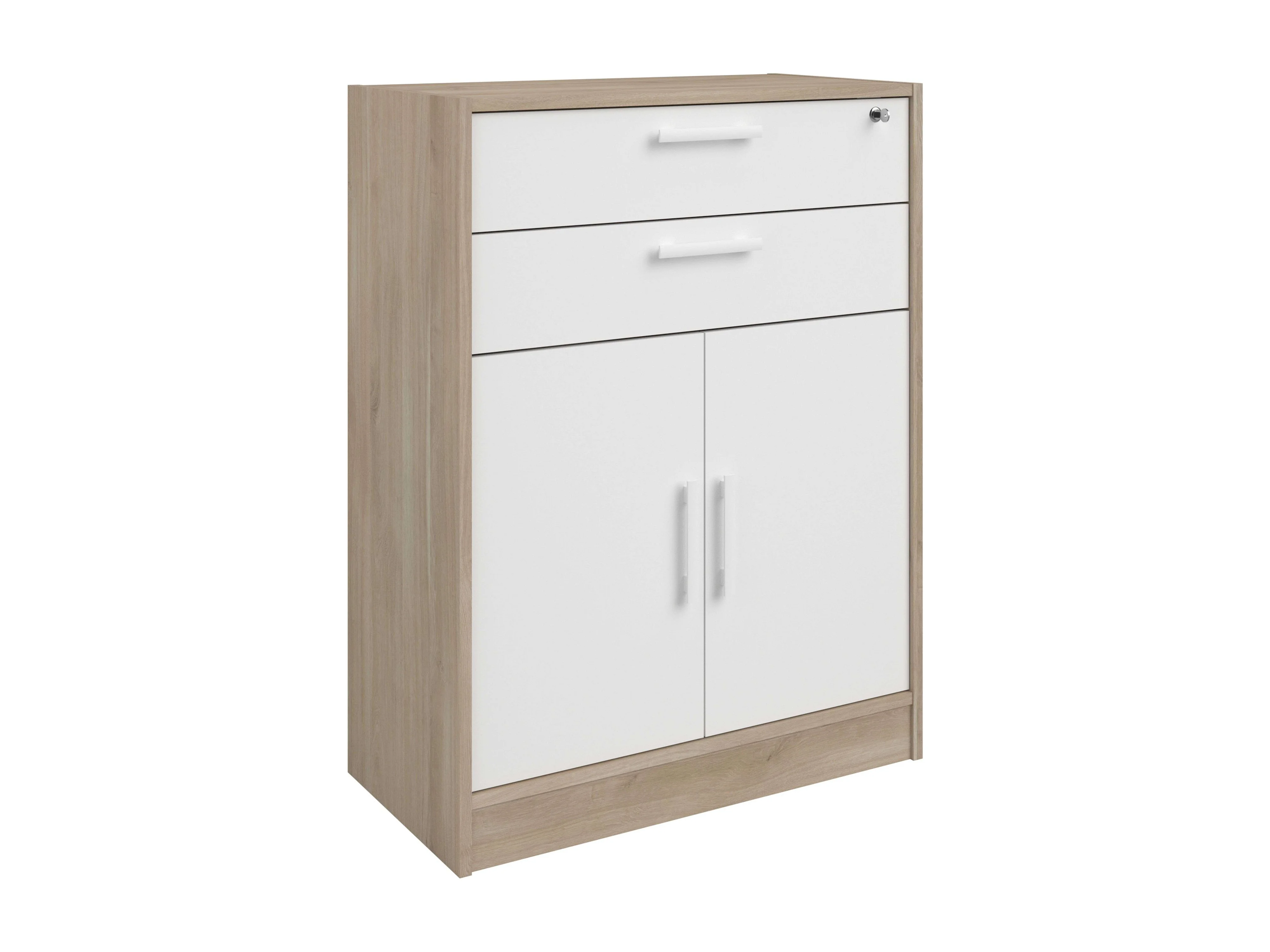 Armario bajo Veltis 2 cajones 2 puertas abatibles blanco y madera claro