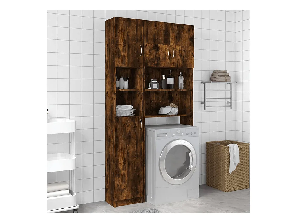 Armario baño madera contrachapada roble ahumado 32x25,5x190 cm ES556619