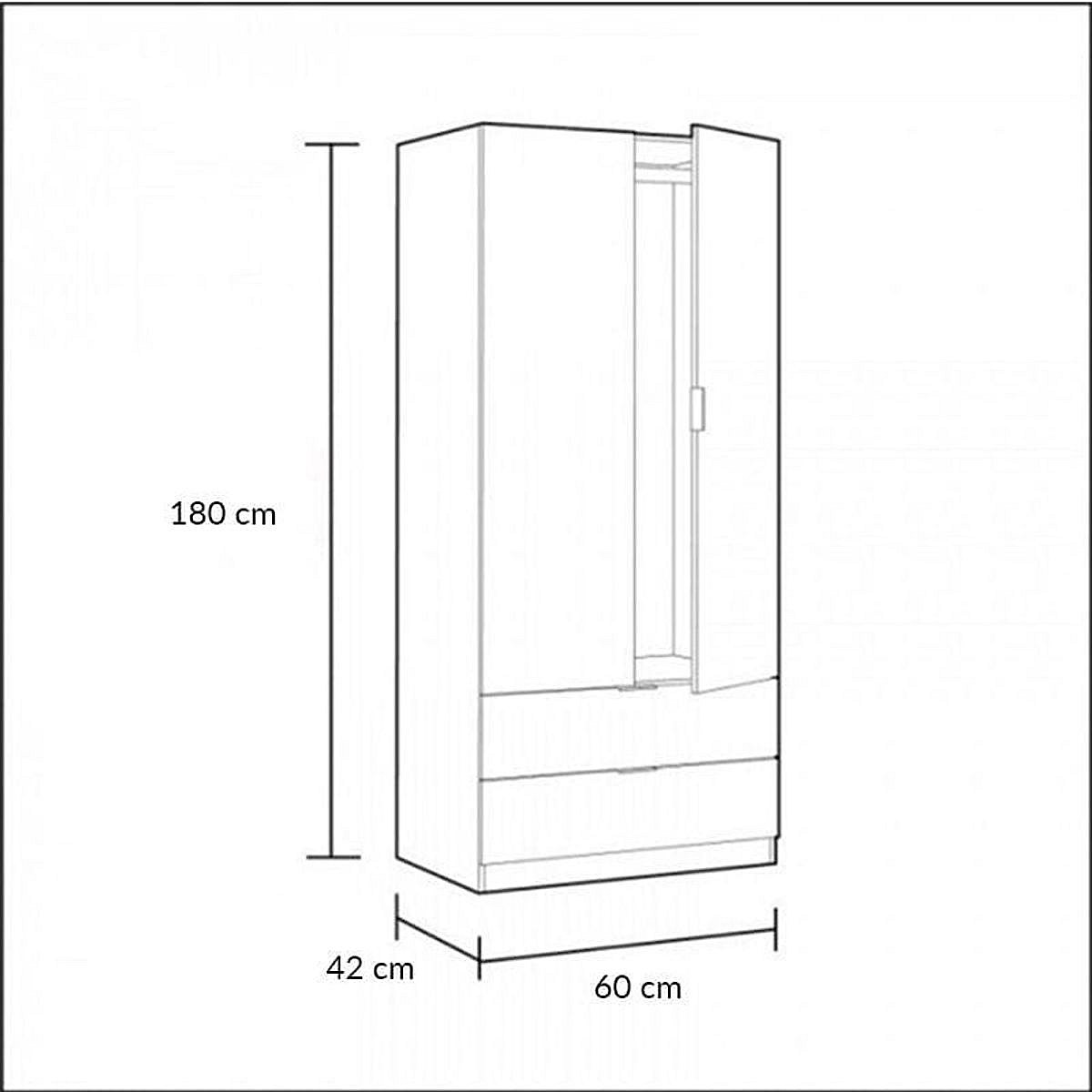 Armario Boreal 2 puertas + 2 cajones blanco 180x60x42 cm