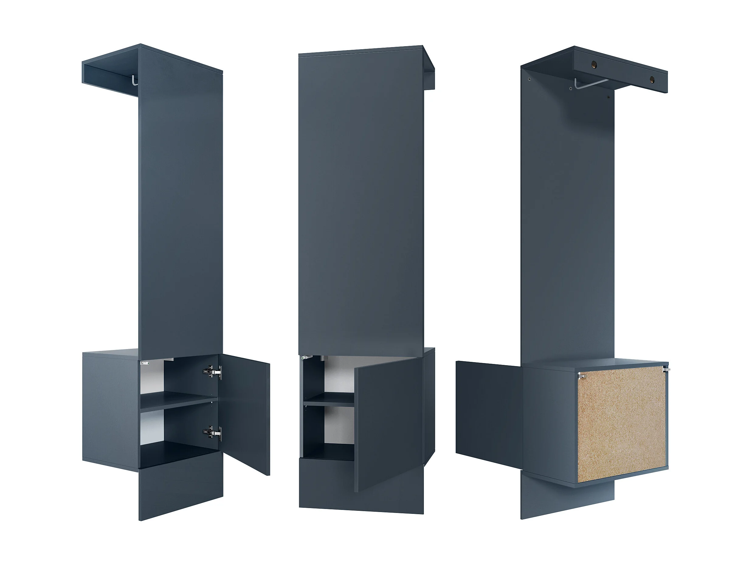 Conjunto de Entrada Enigma, Compuesto por 1 Zapatero, 1 Espejo de Pared y 2 Paneles Percheros Azul real