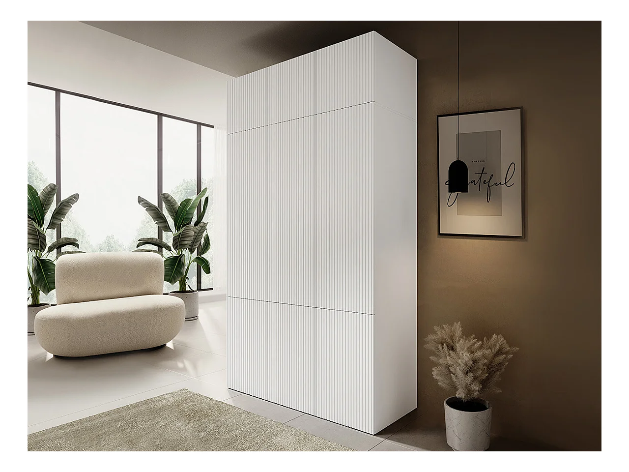Armario Levmari 114, Blanco, 244x135x56cm, Puertas de armario: Con bisagras