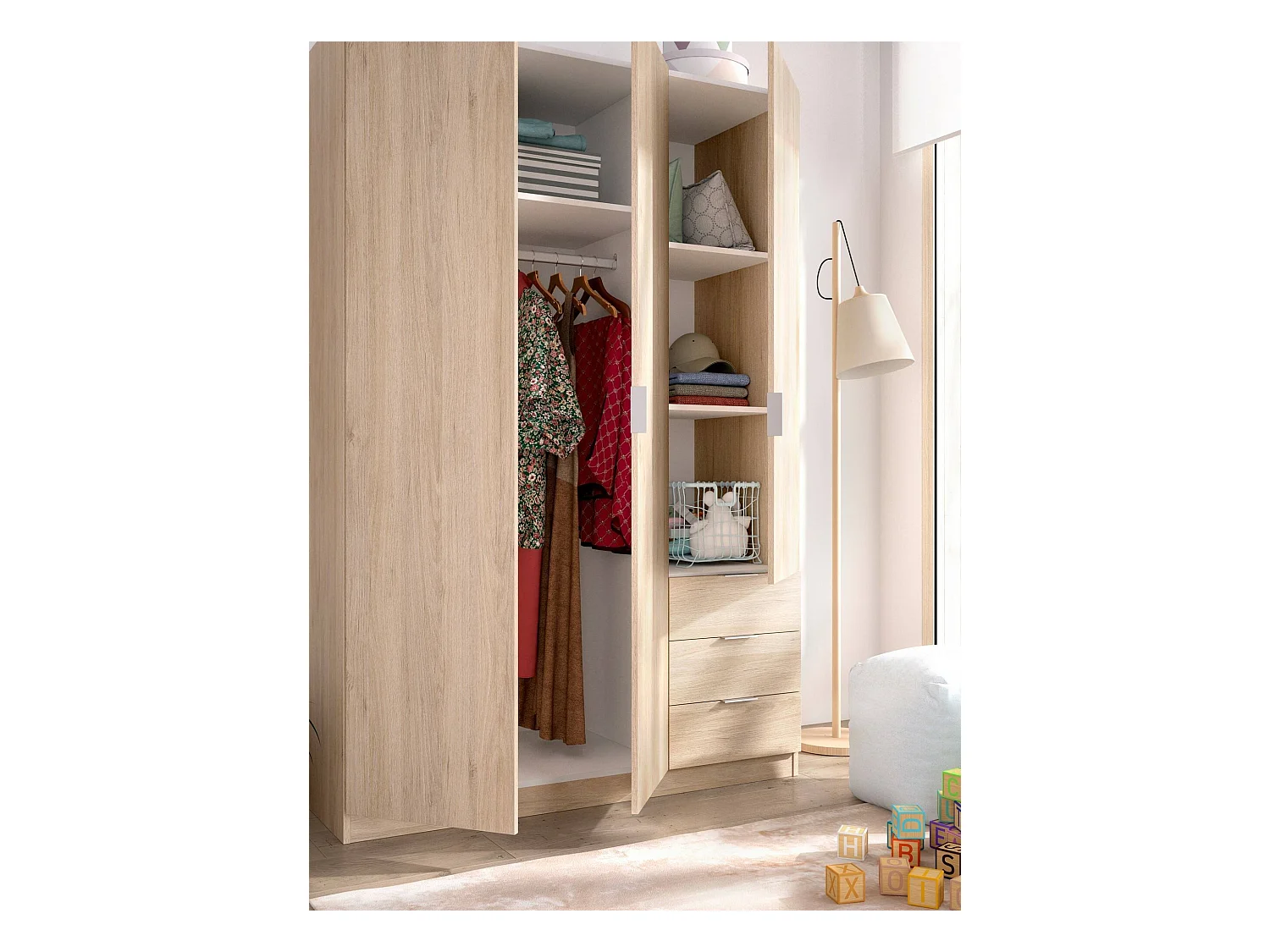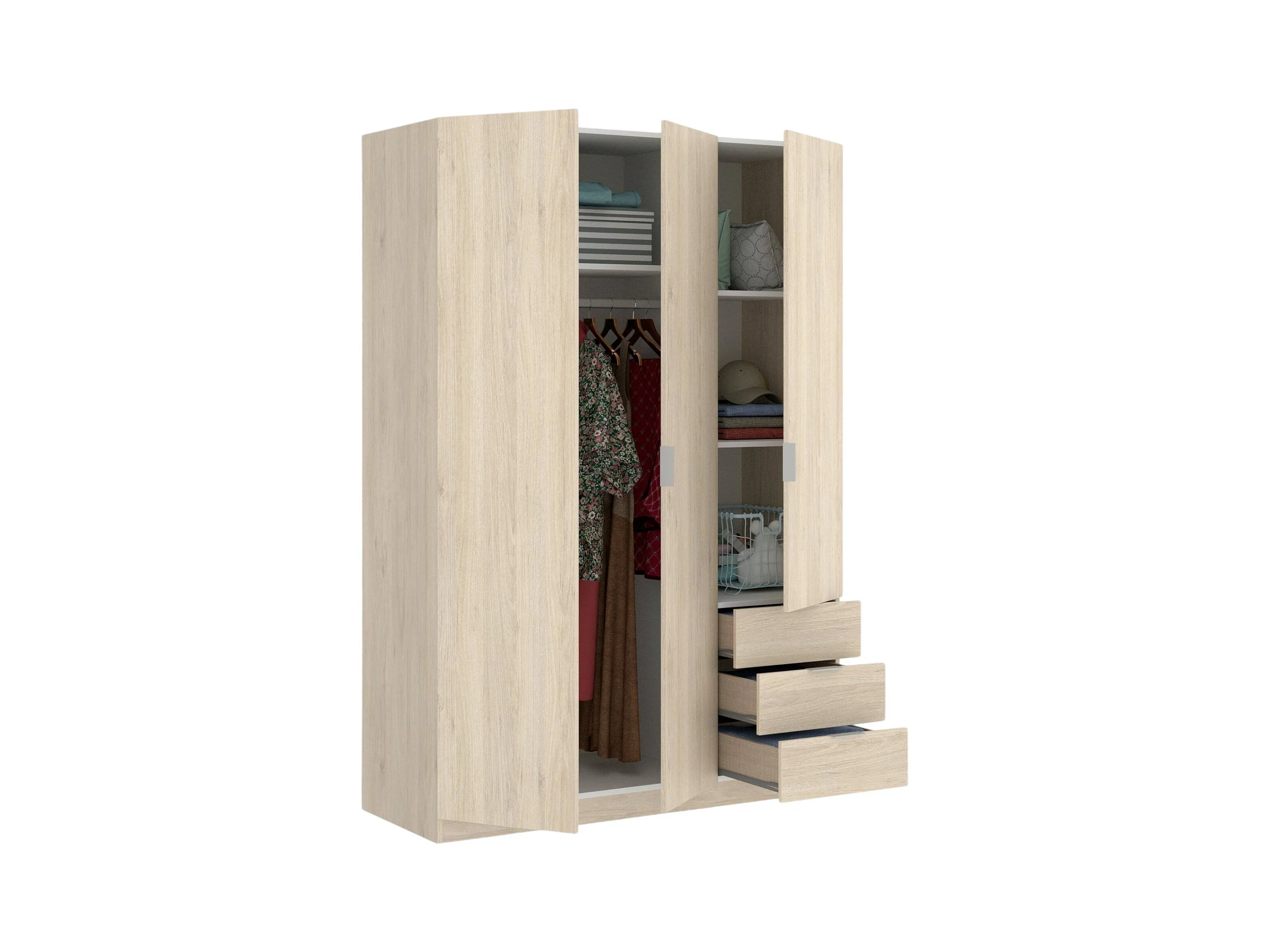 Armario Cimone, Perchero para dormitorio, Armario con 3 puertas batientes y 3 cajones, 121x52h184 cm, Roble