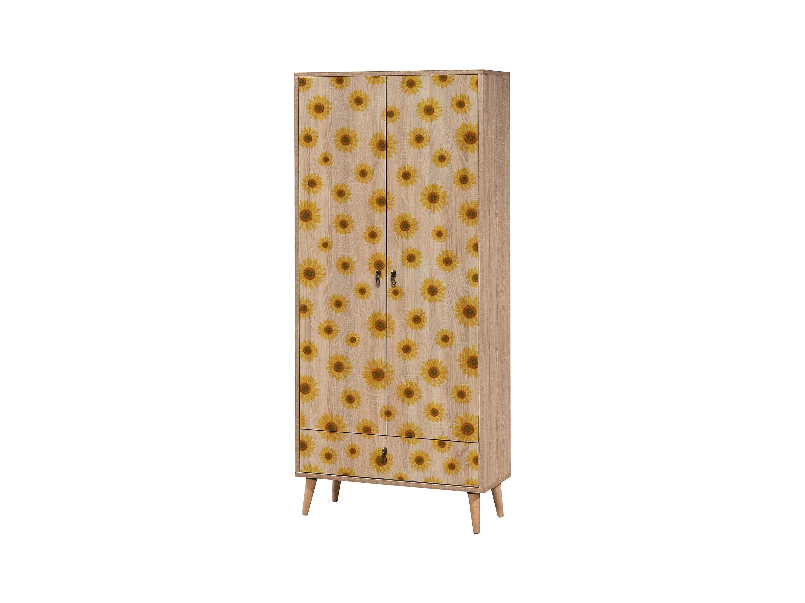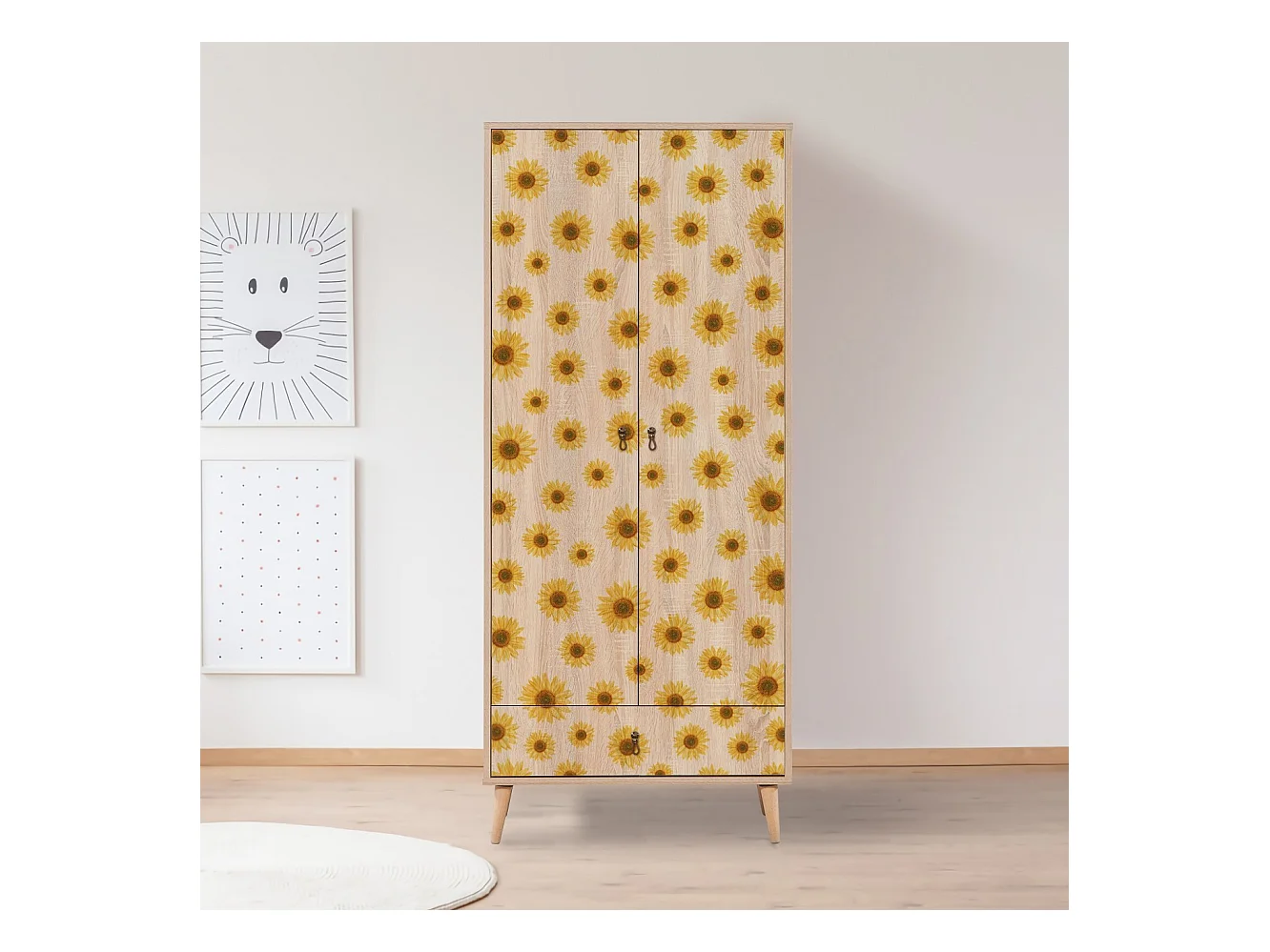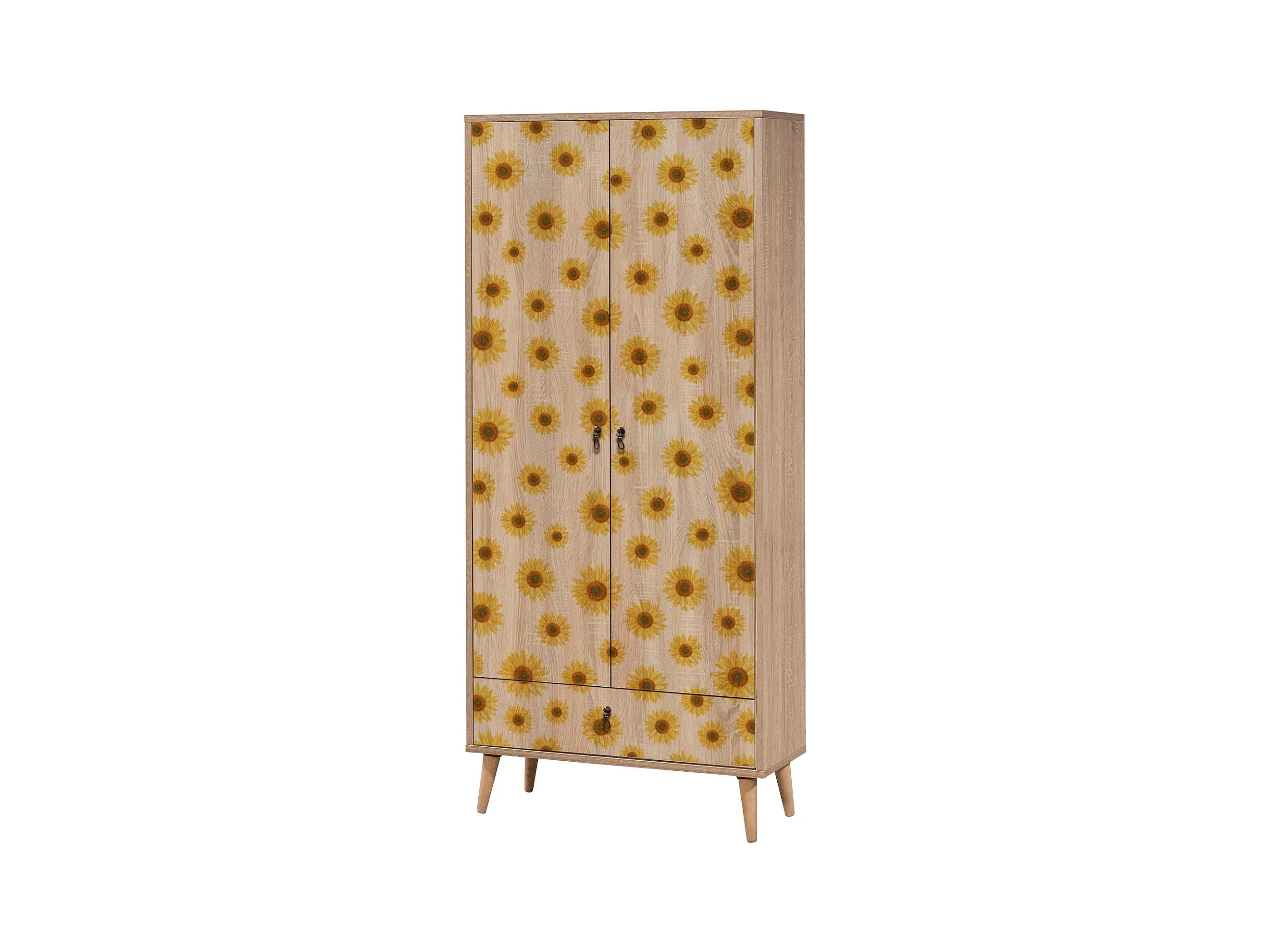 Armario de madera con 4 cajones y 2 puertas amarillo 60x40x140h cm