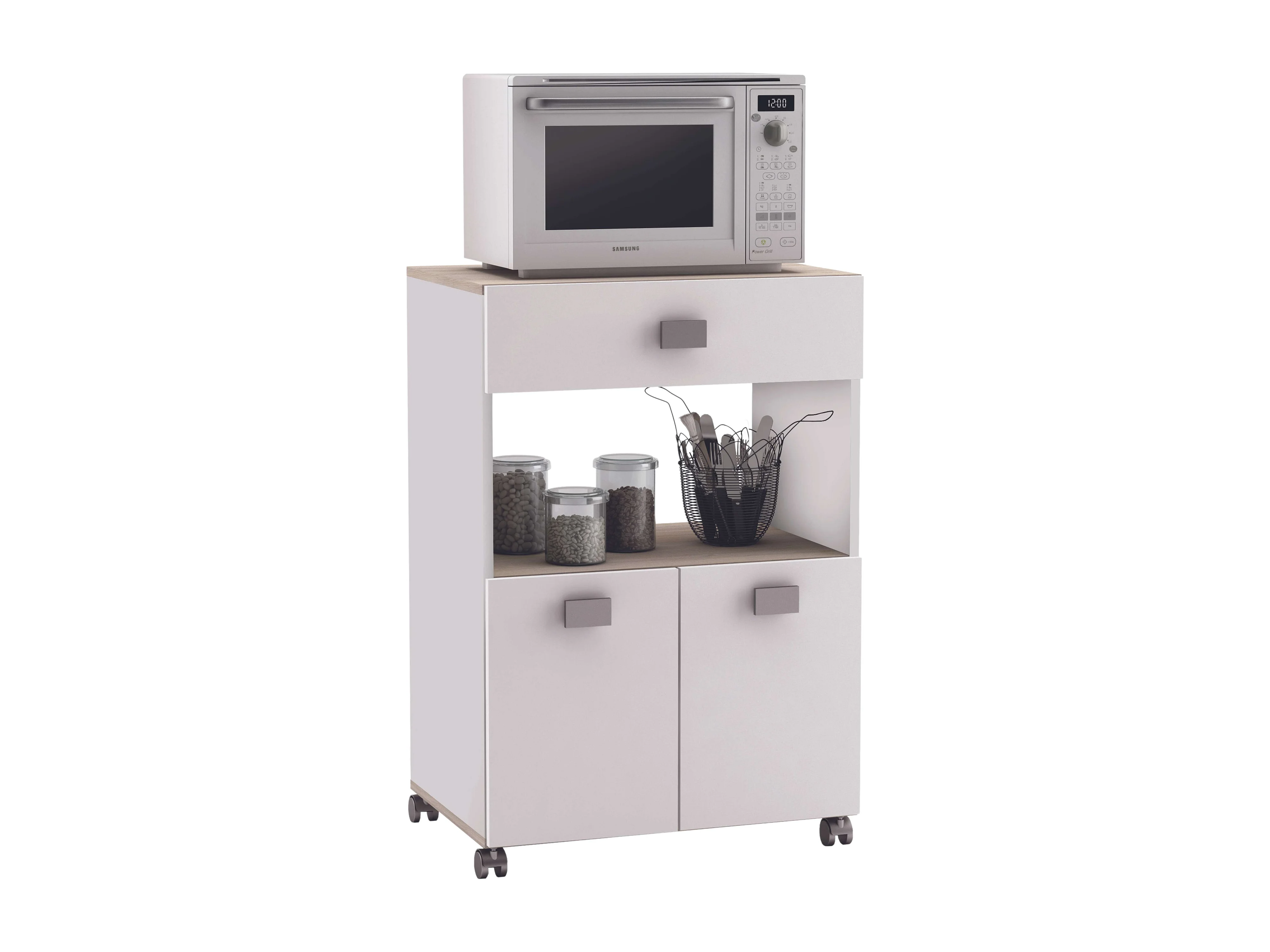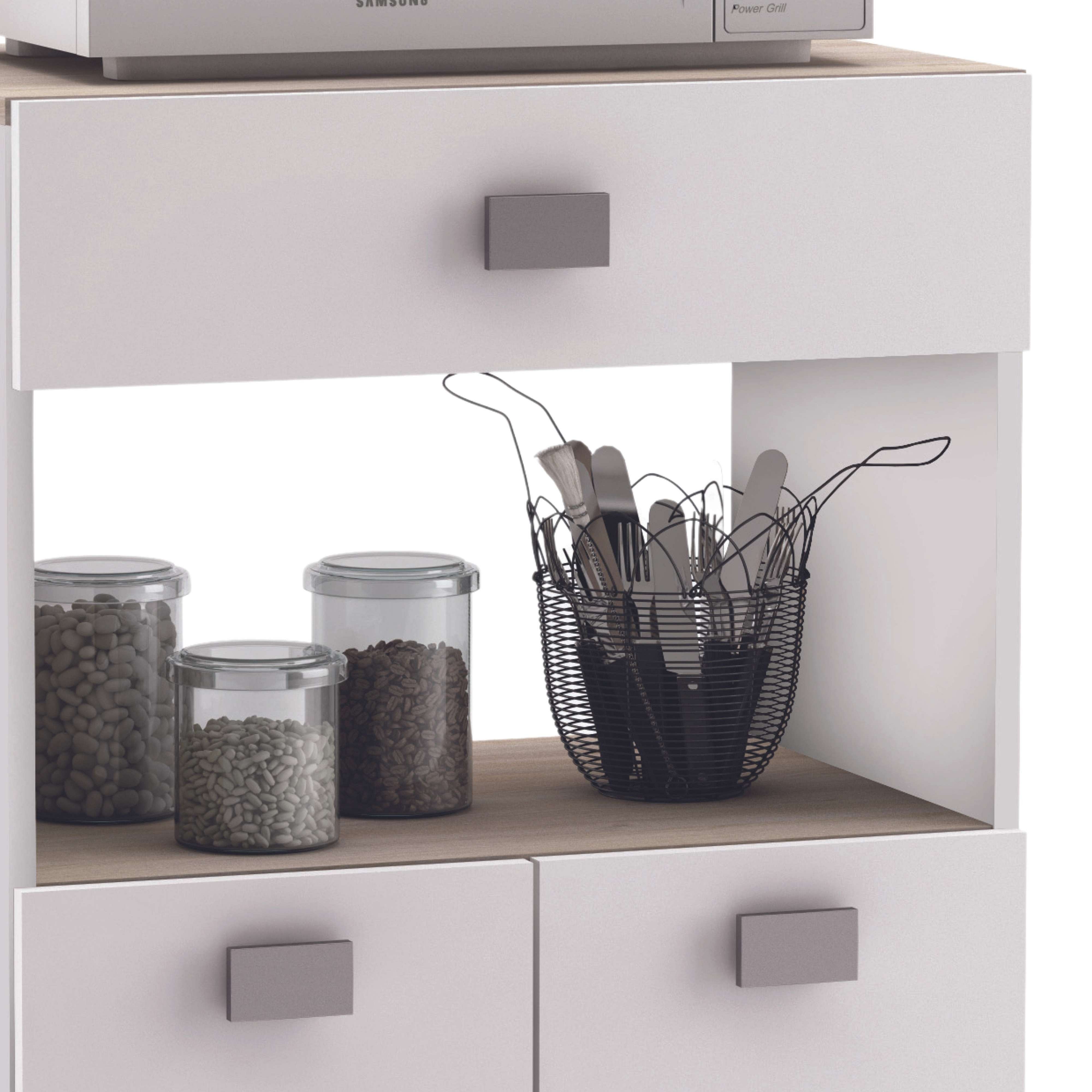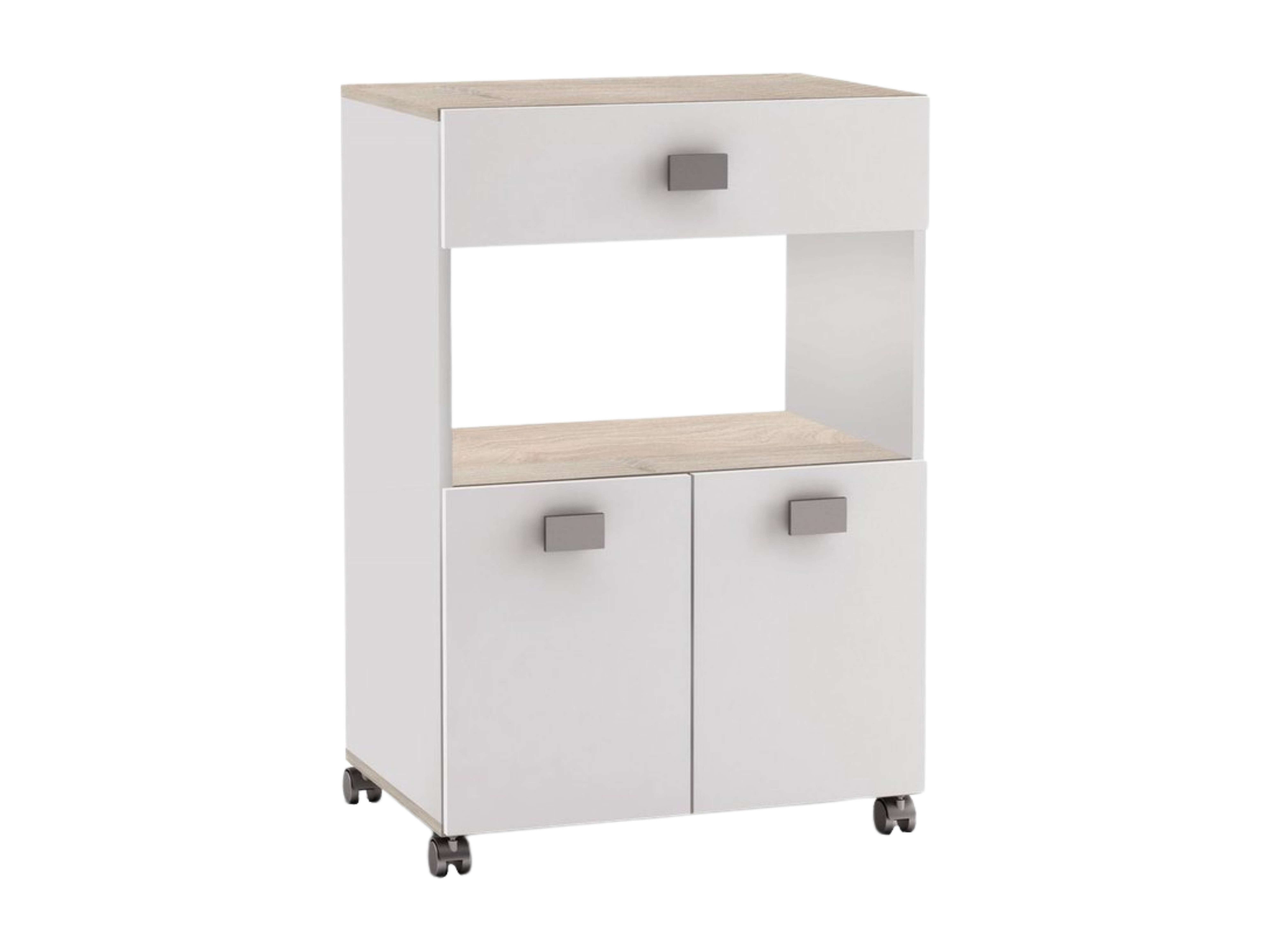 Mueble Auxiliar Cocina Ruedas 2 puertas Blanco Mate Roble Kronberg 88x60x41 cm