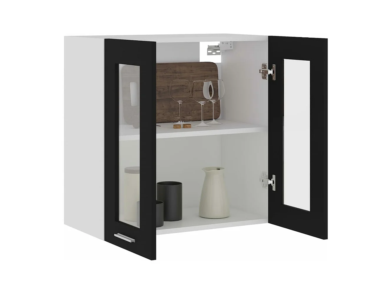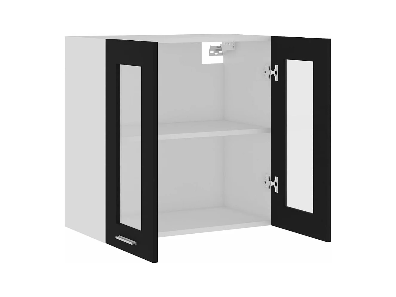 Vitrina colgante de madera maciza "Lyon", color negro, 60x31x60 cm