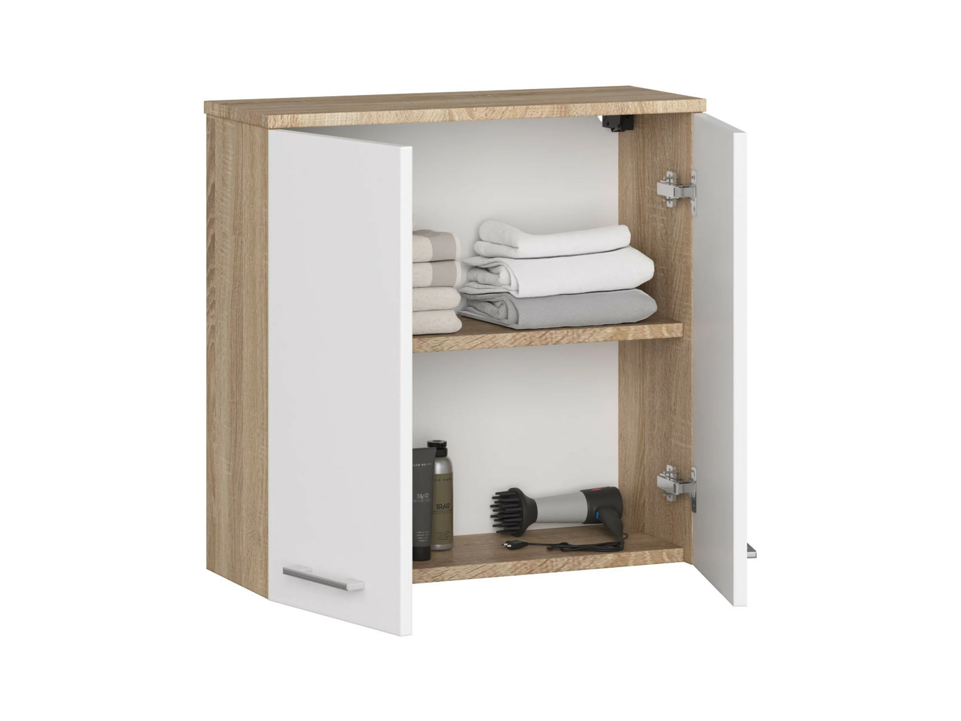 Armario colgante de baño AKORD FIN Roble Sonoma de 60 cm con 2 puertas frente en color Blanco 2 estantes 60x22,5x60 cm