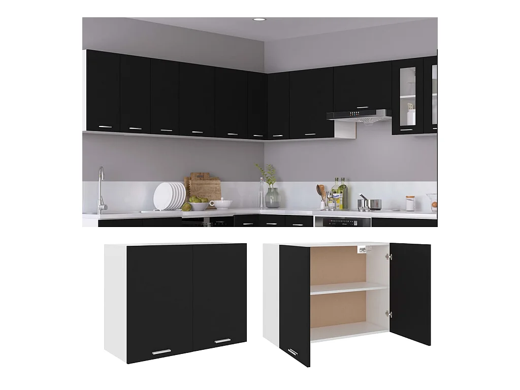 Armario colgante de cocina contrachapada negro 80x31x60 cm ES594258
