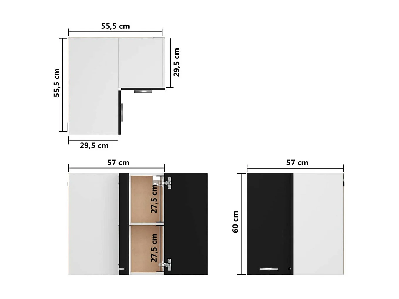 Armario colgante esquina madera de ingeniería negro 57x57x60 cm