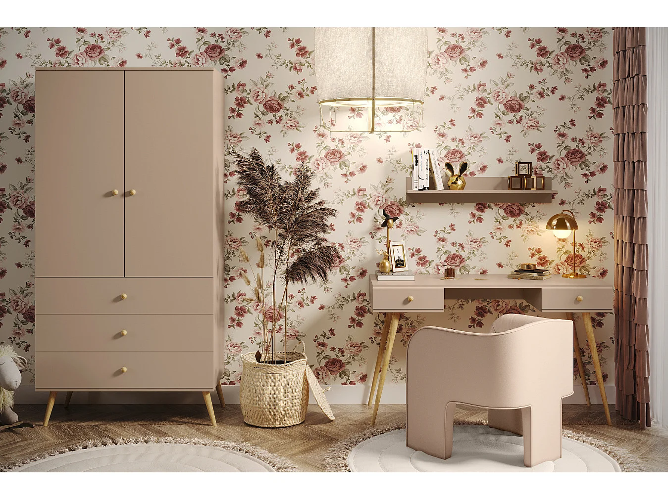 Armario KALISTA 101 cm color arena con espejo y 3 cajones - 2 puertas batientes