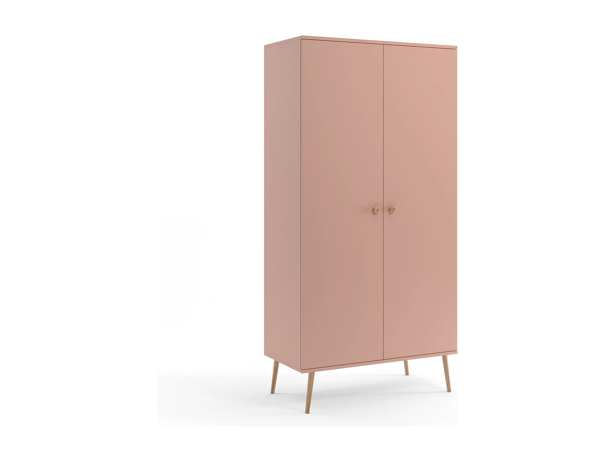 Armario Color Rosa Estilo Escandinavo – 2 Estantes y Barra – Disponible para Salón o Dormitorio 202x100x52 cm