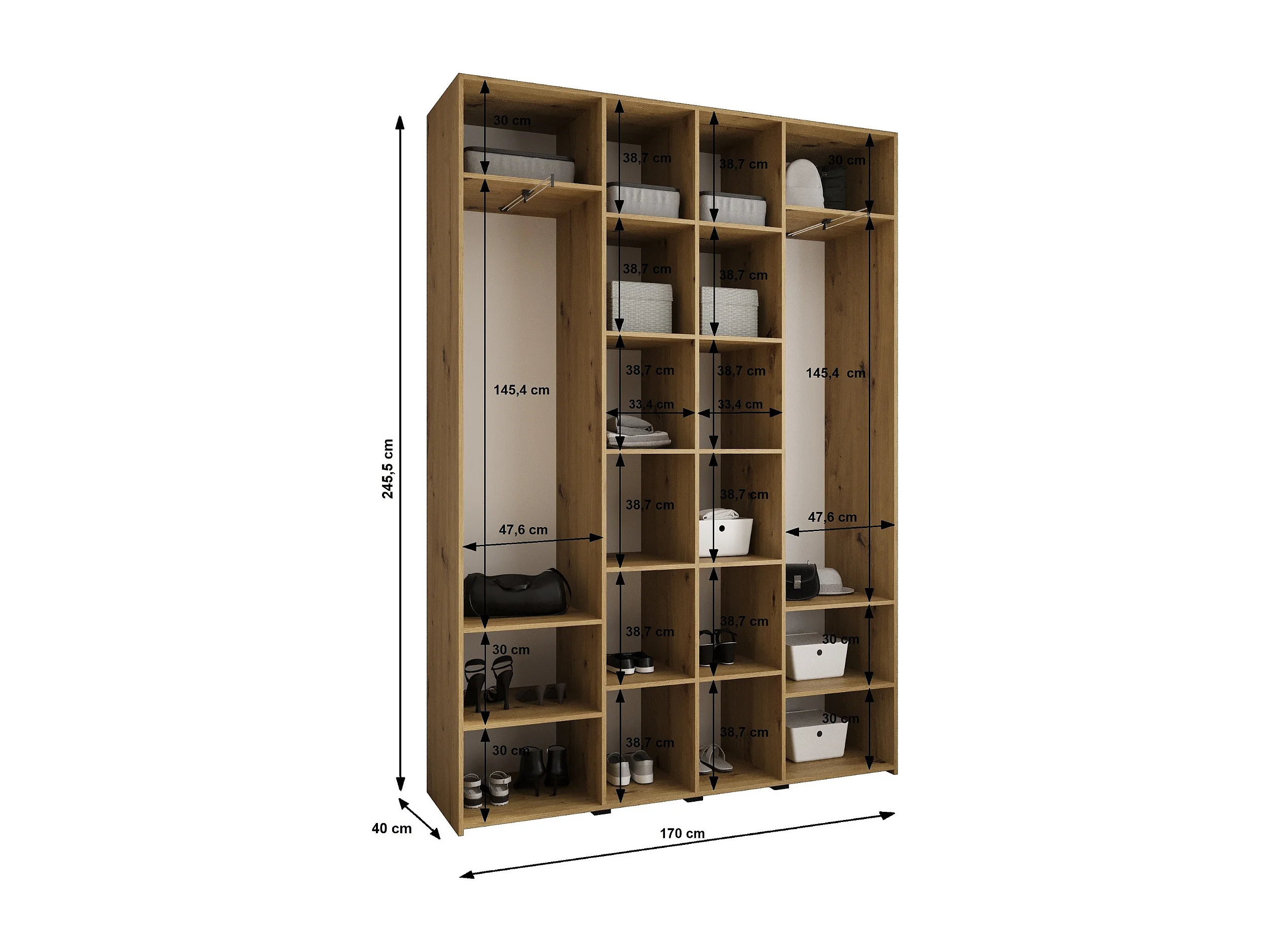 Armario Como 2 con puertas batientes 245,5/170/40 4 puertas (cachemira/negro)