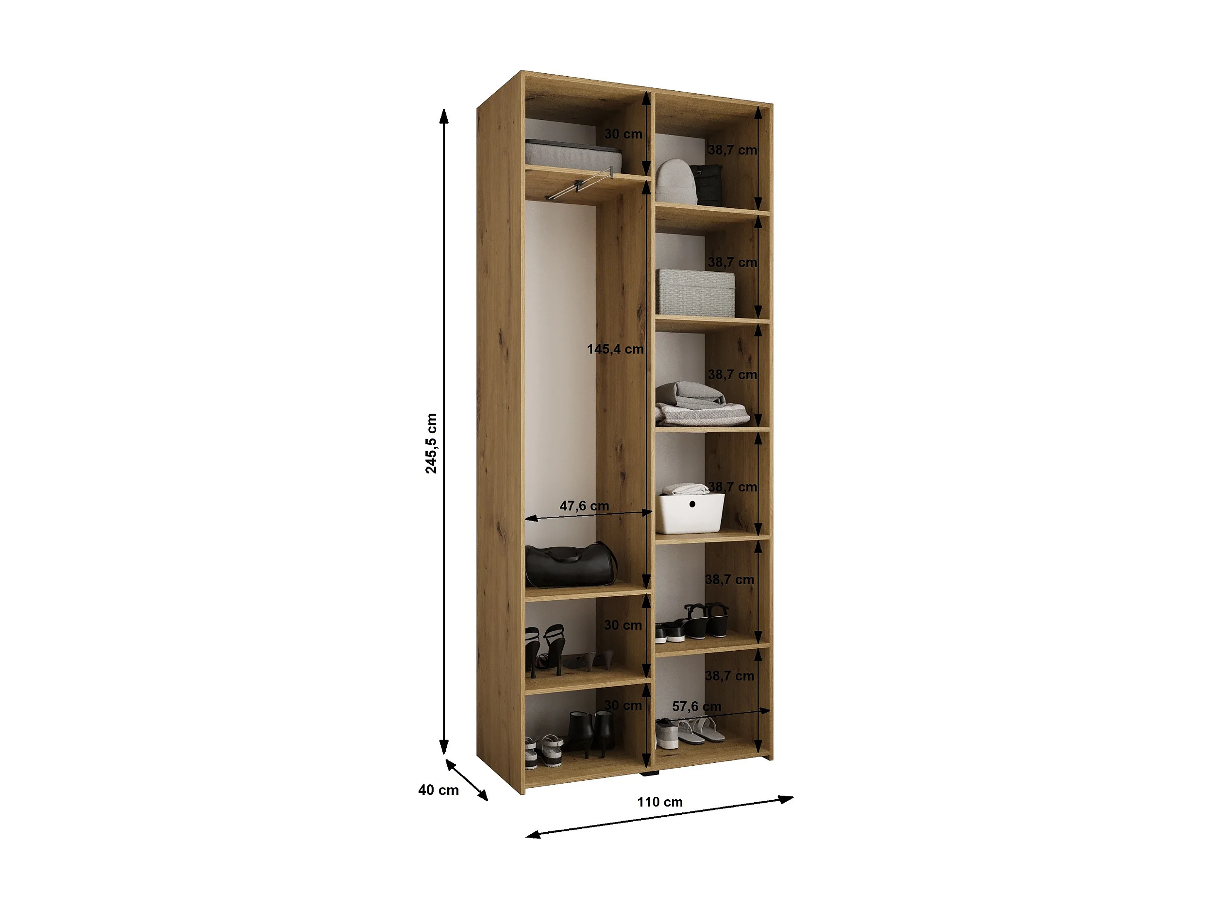 Armario Como 3 con puertas batientes 245,5/110/40 2 puertas (blanco/oro)
