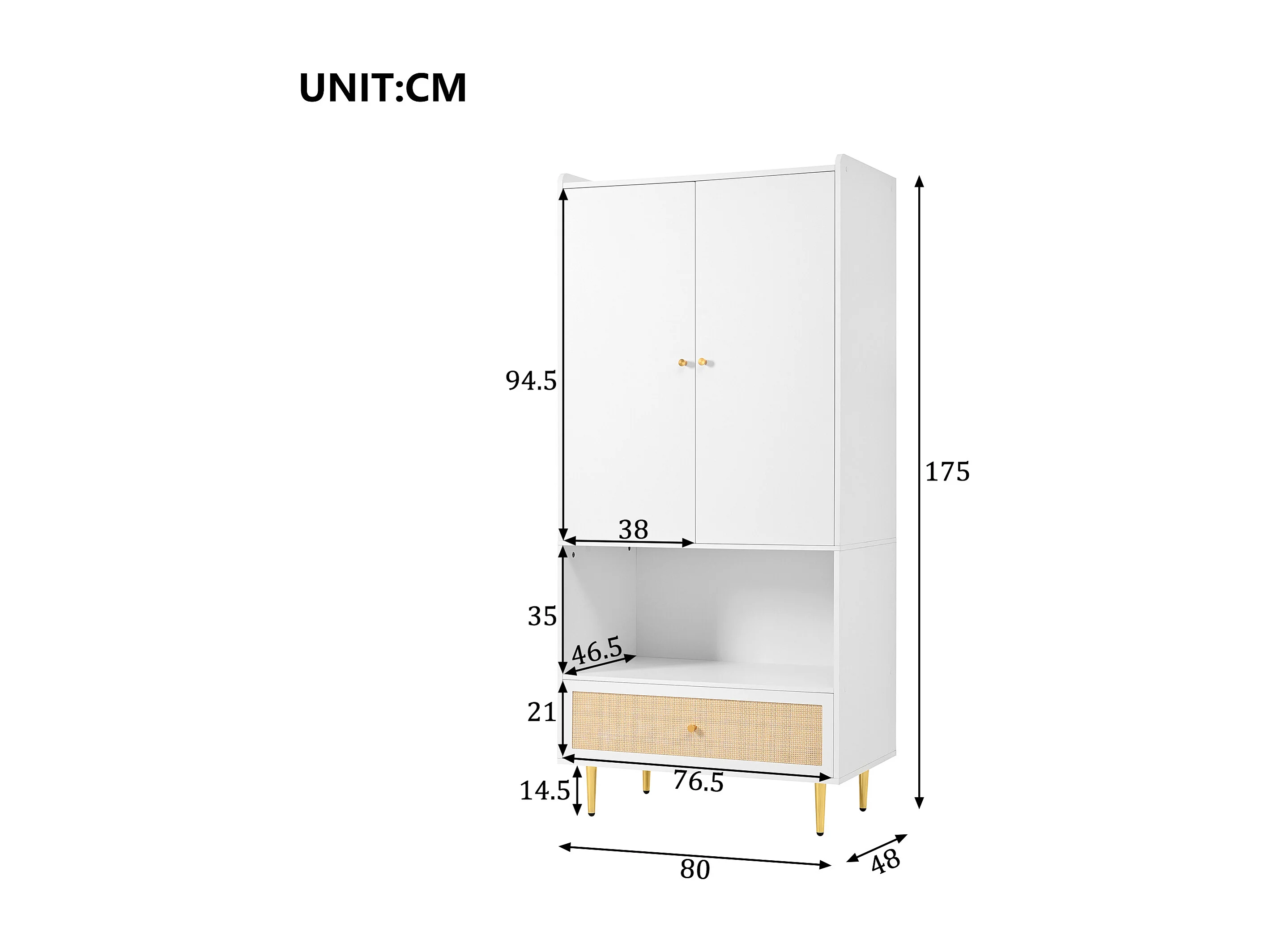 Armario con 2 puertas, compartimento abierto y cajón - Blanco y madera