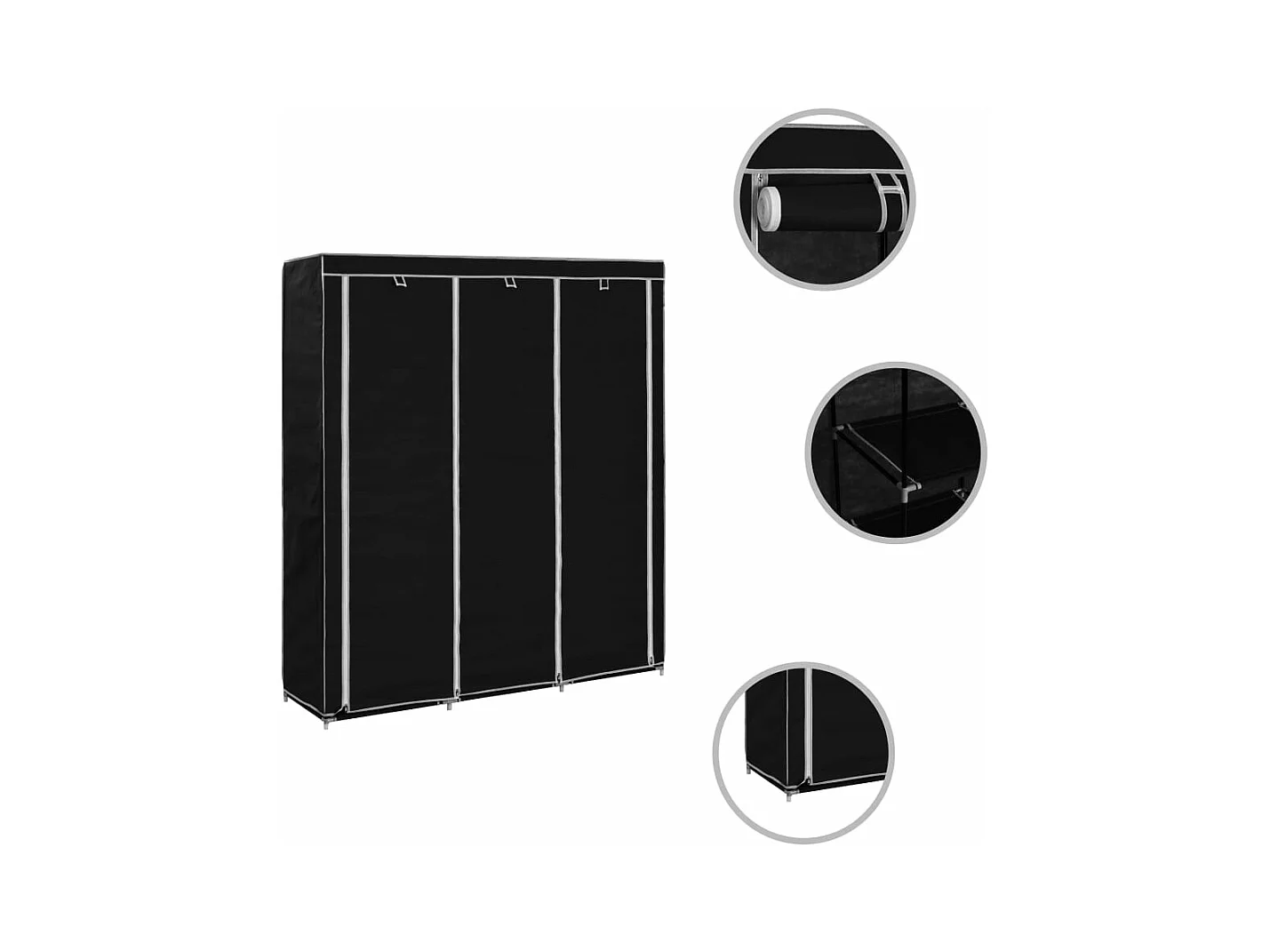 Armario con compartimentos y varillas tela negro 150x45x175 cm ES264804