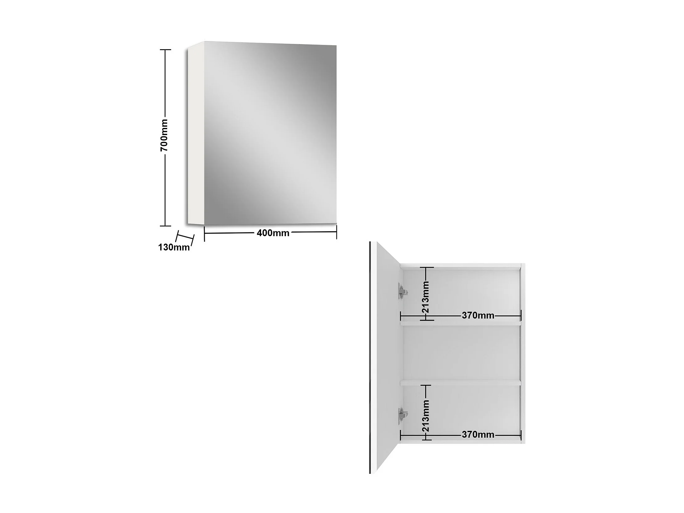 Armario con espejo para baño Armario principal 70 x 40 x 13 cm,Armario auxiliar 70 x 20 x 13 cm Con 3 estantes,acabado espejo de alta definición