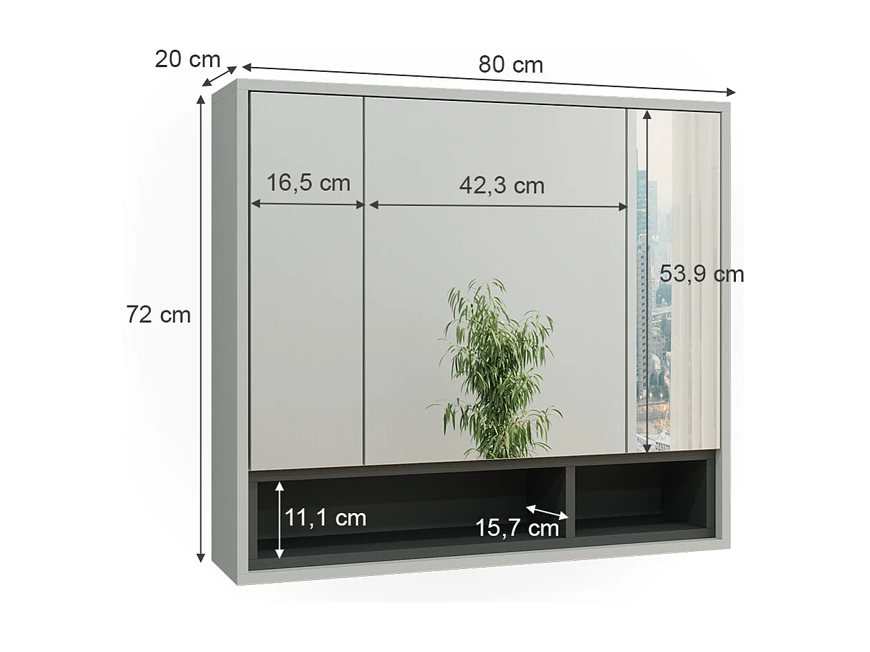 Armario con espejo antracita/blanco 80x20x75 karen