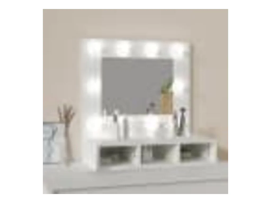 Mueble de baño con espejo LED 89x14x62cm Blanco brillo