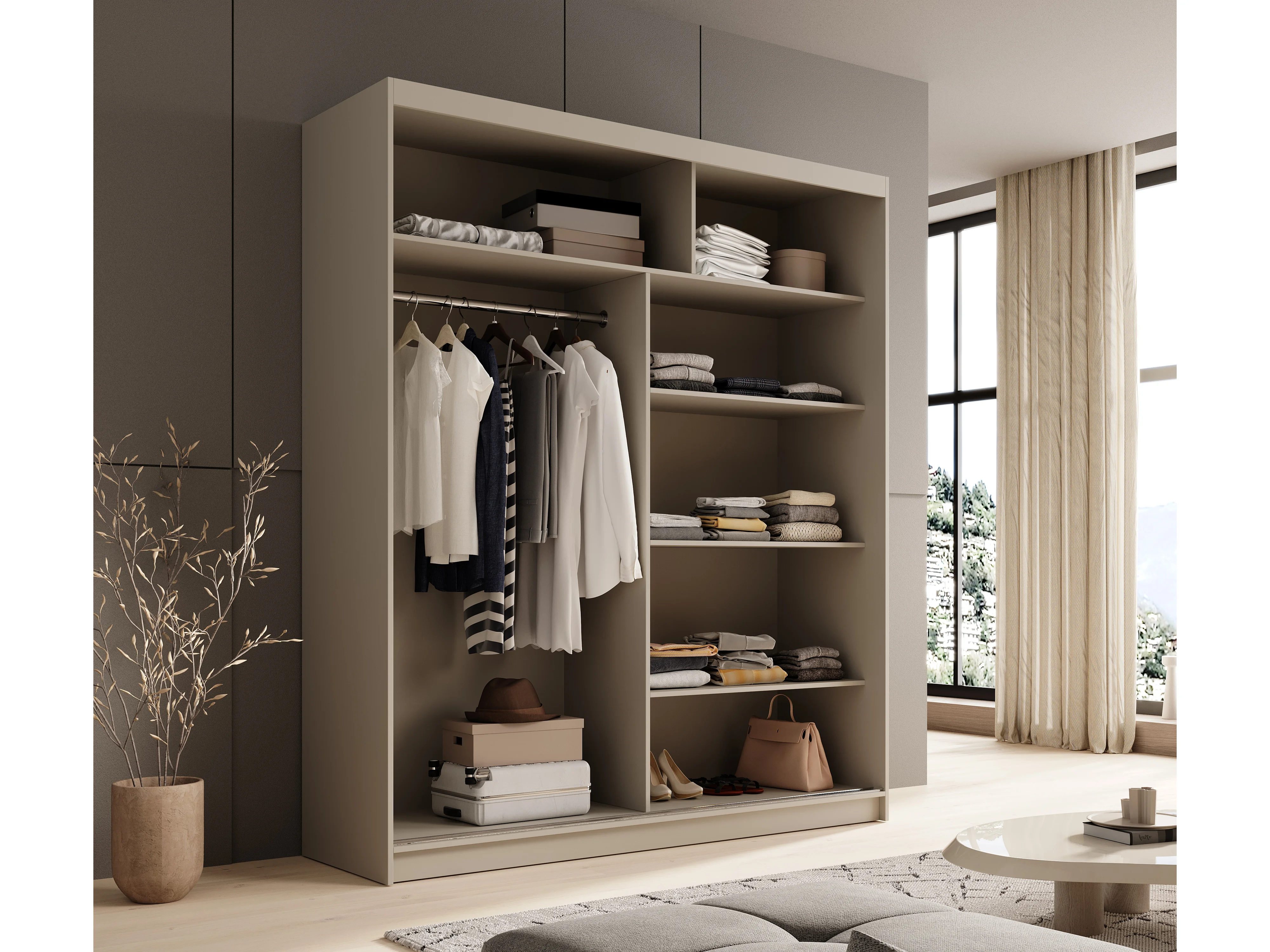 Armario corredero de 2 puertas con espejo KAROW 180 – Mueble de almacenaje moderno-Color ribete verde crudo