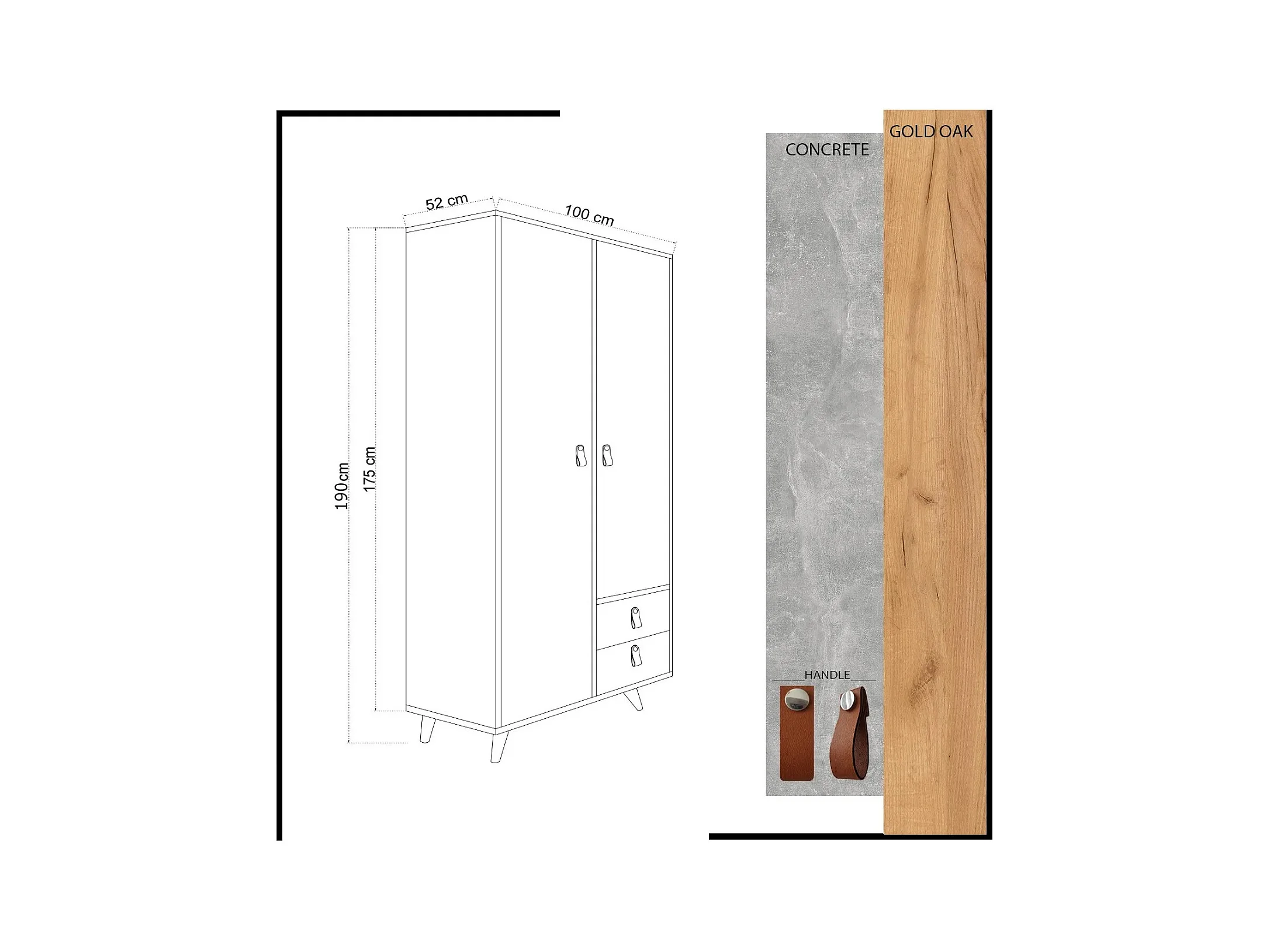 Armario CYRİA color roble Amarillo 100x190x52 cm