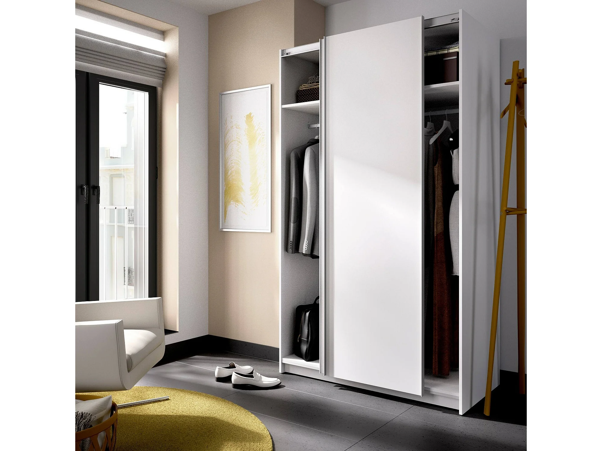 Armario Dabbou, Perchero para dormitorio, Armario con 2 puertas correderas, 120x65h204 cm, Blanco