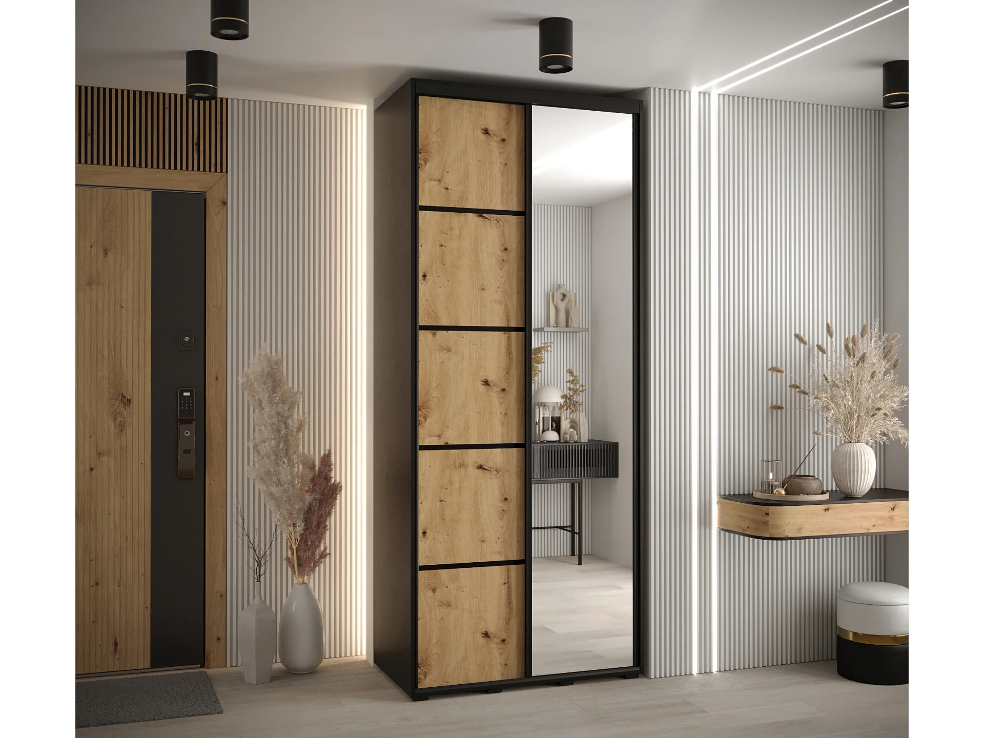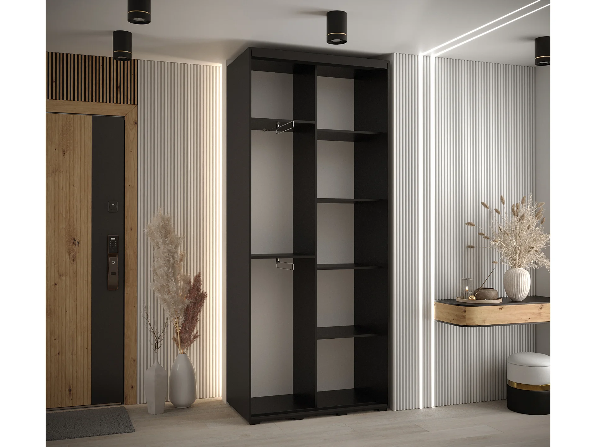 ARMARIO DAVOS 5 DE PUERTAS CORREDERAS 235,2/110/45 2 puertas (Negro/Artisan/Negro)