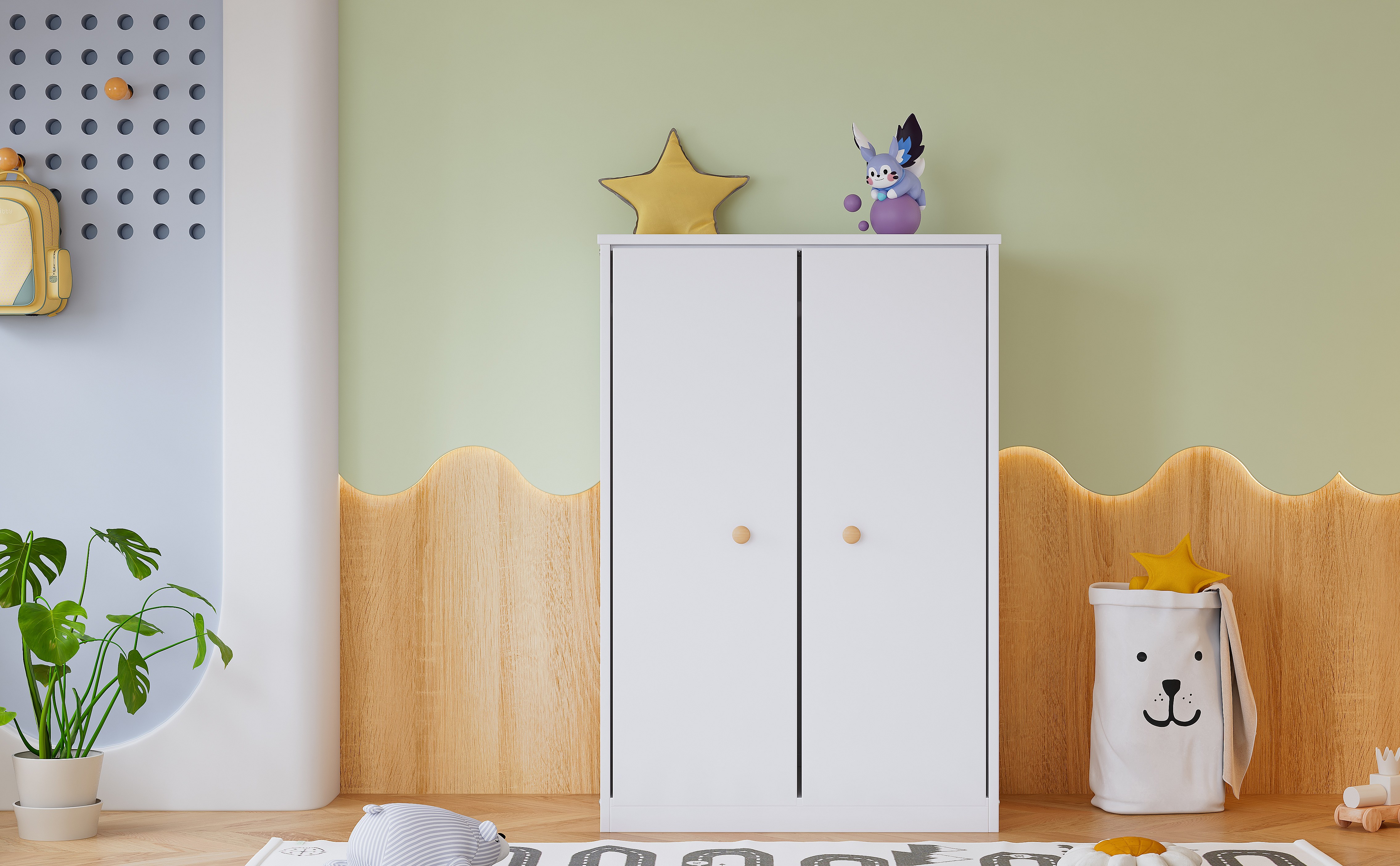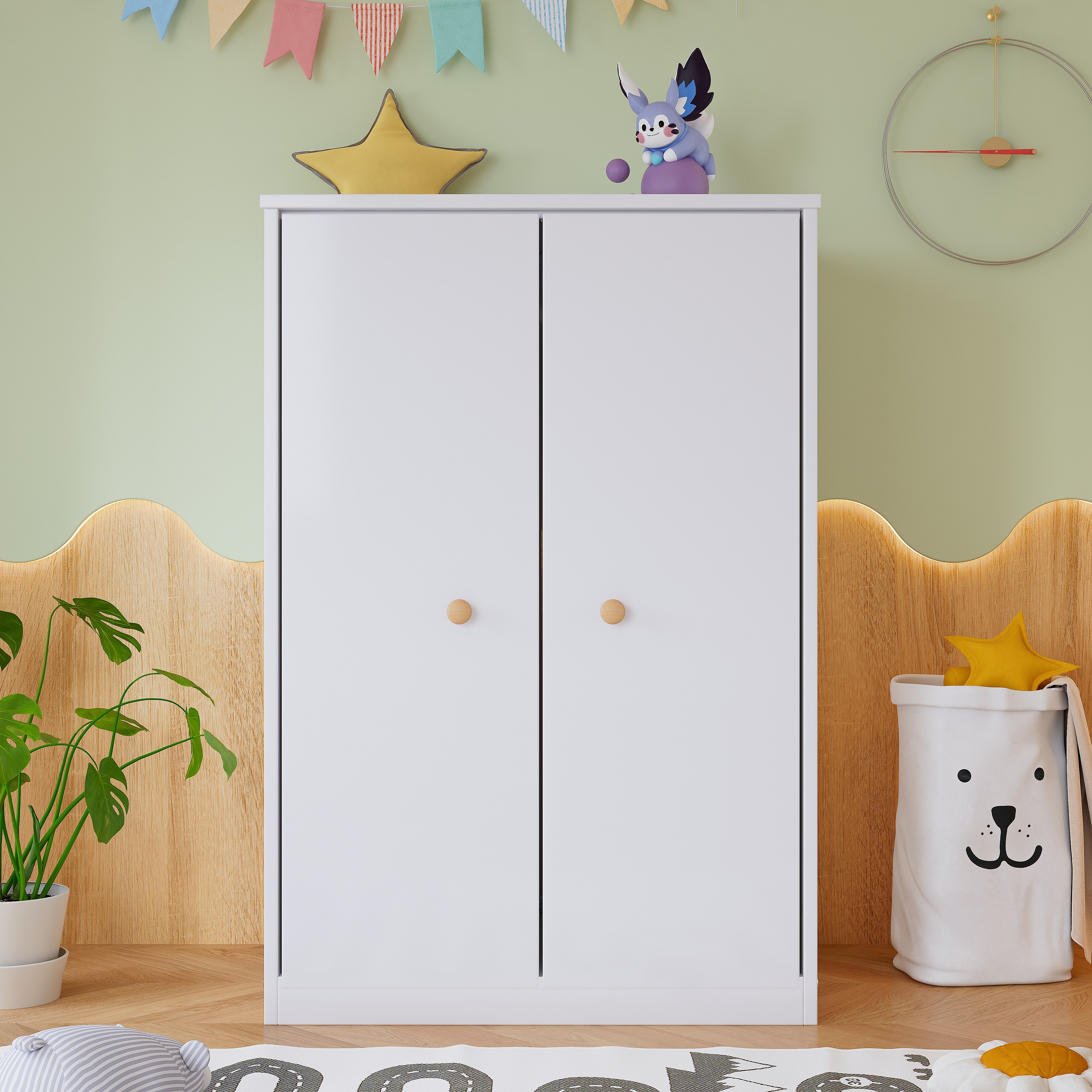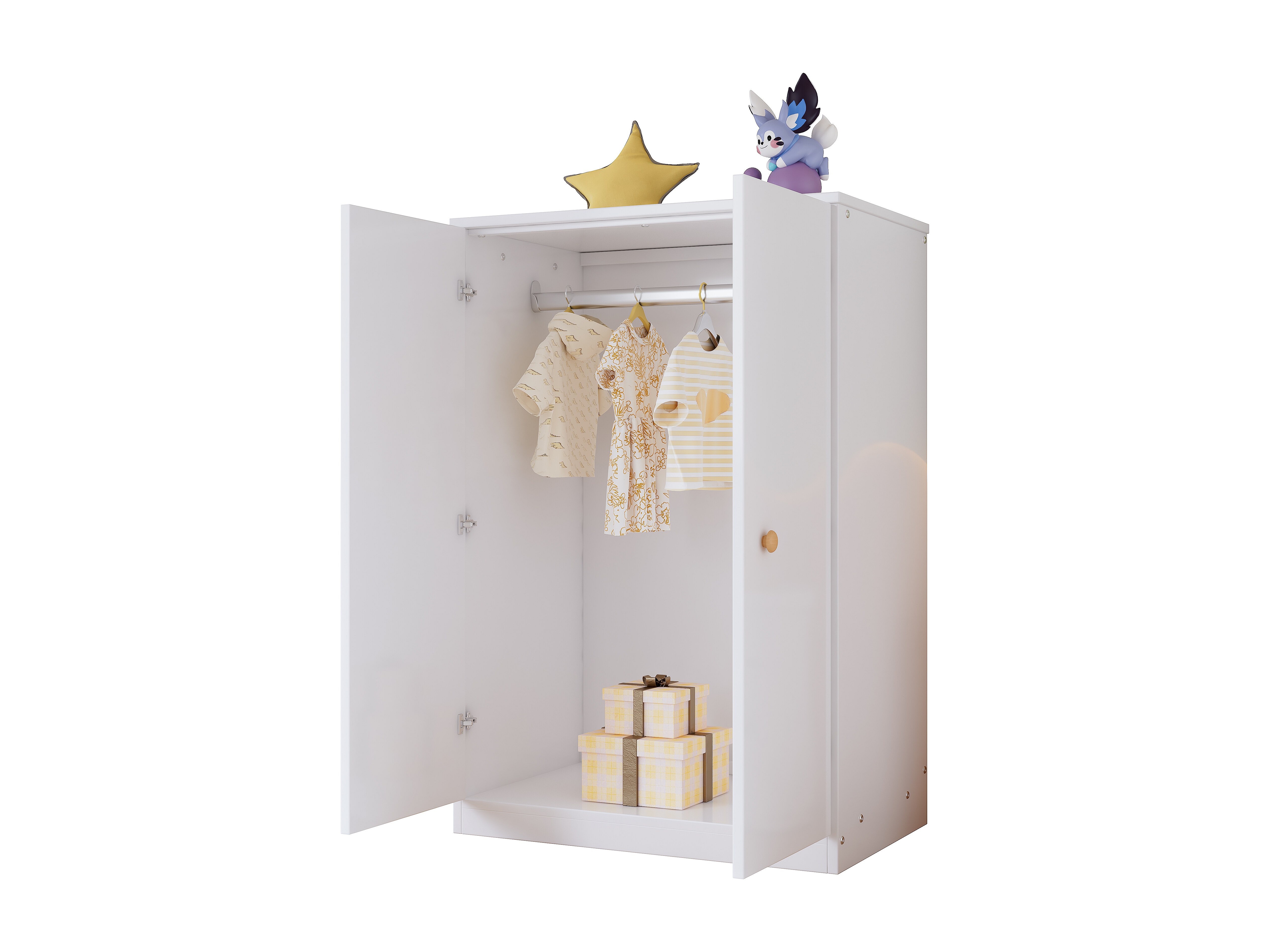Armario de 2 puertas con barra para ropa, diseño compacto, MDF, blanco (80x50x120cm)
