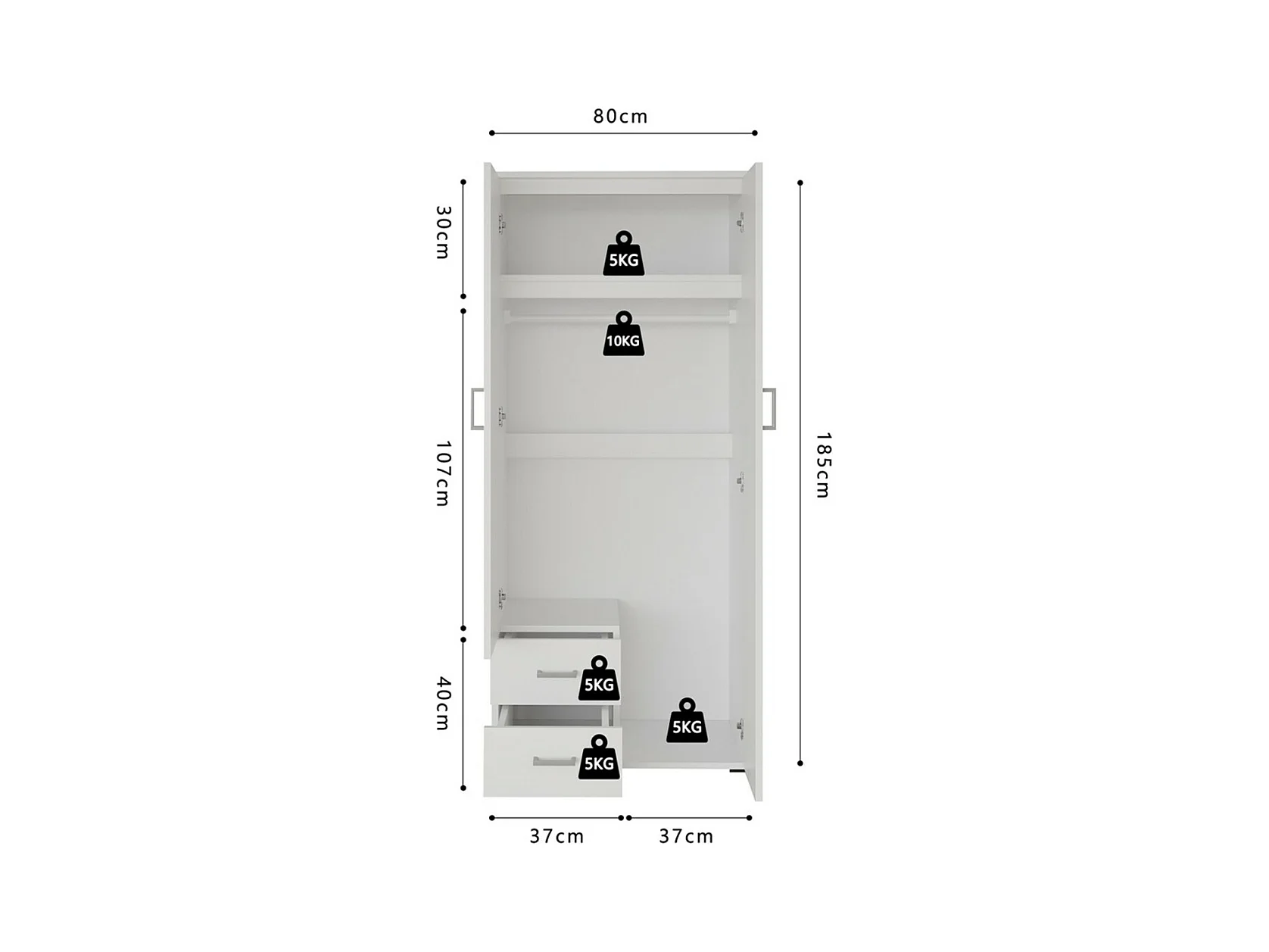 Armario de 2 puertas con espejo TOM – Dimensiones H185 x L80 x P52 cm – Color blanco – Estilo diseño
