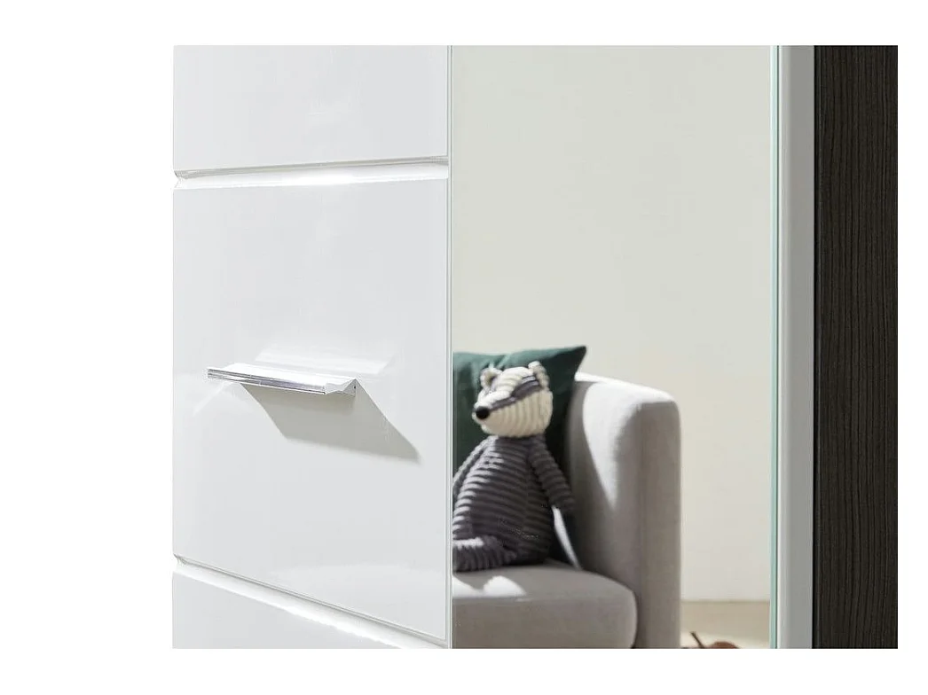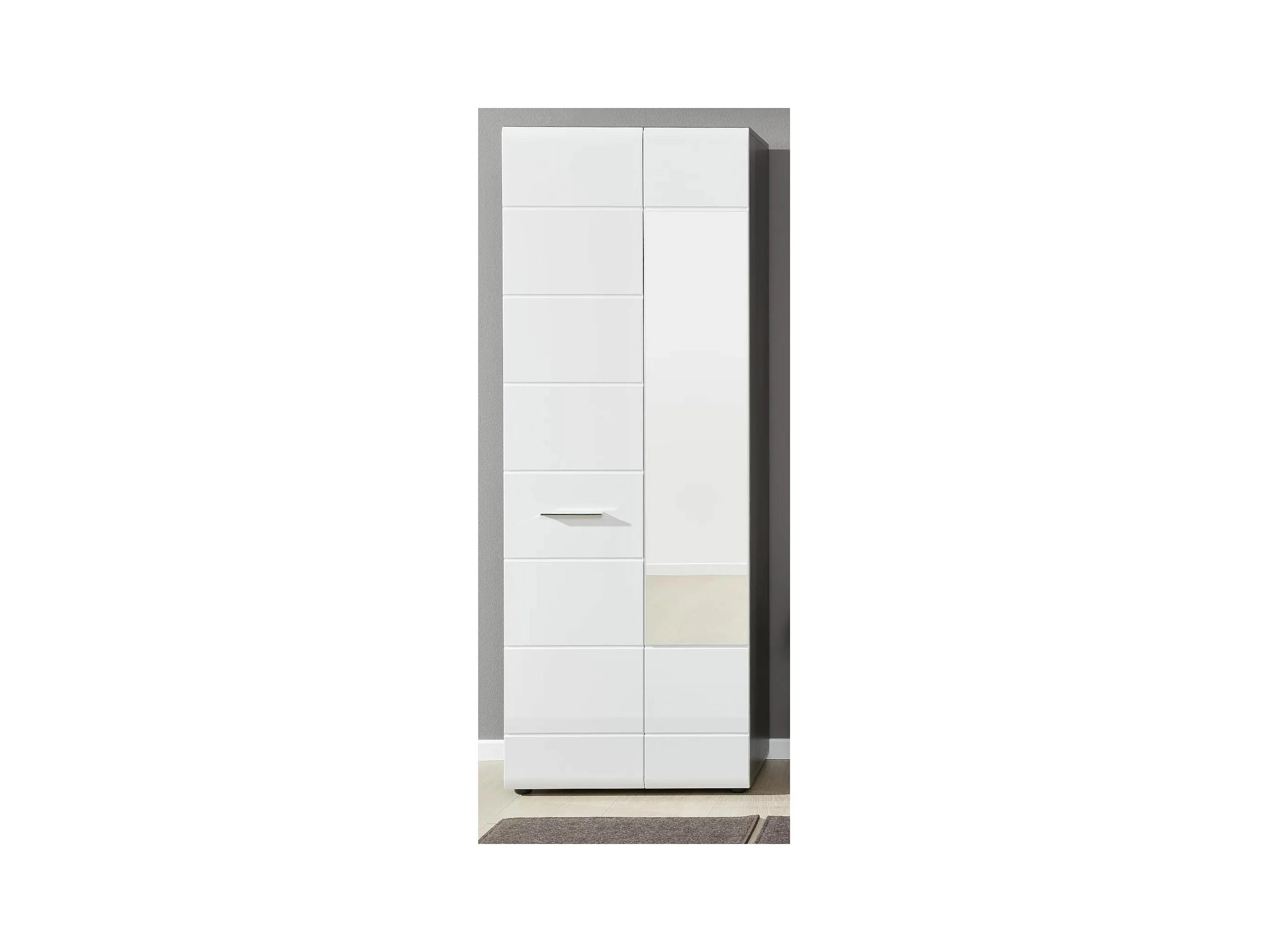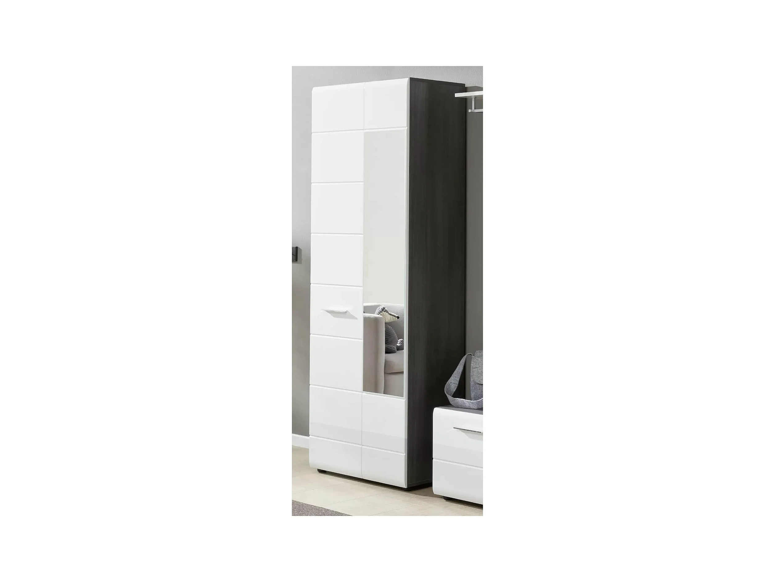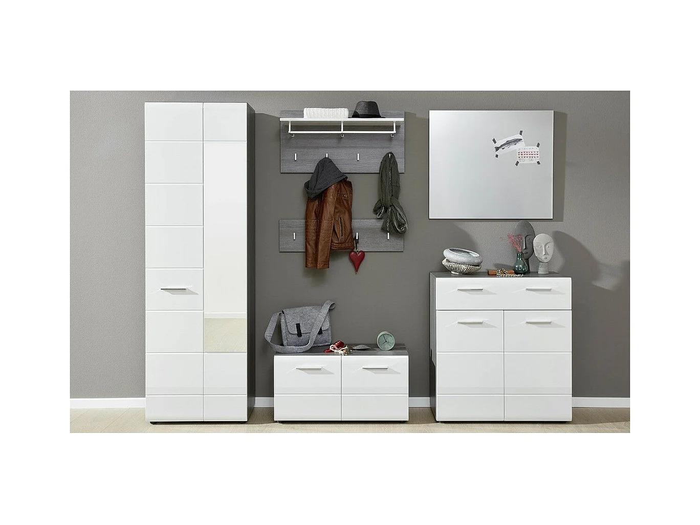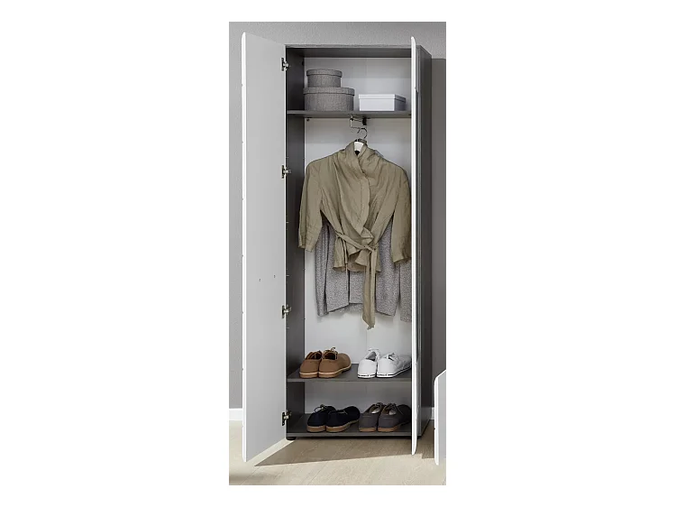 Armario de 2 puertas de melamina blanca y gris con espejo Bezzi